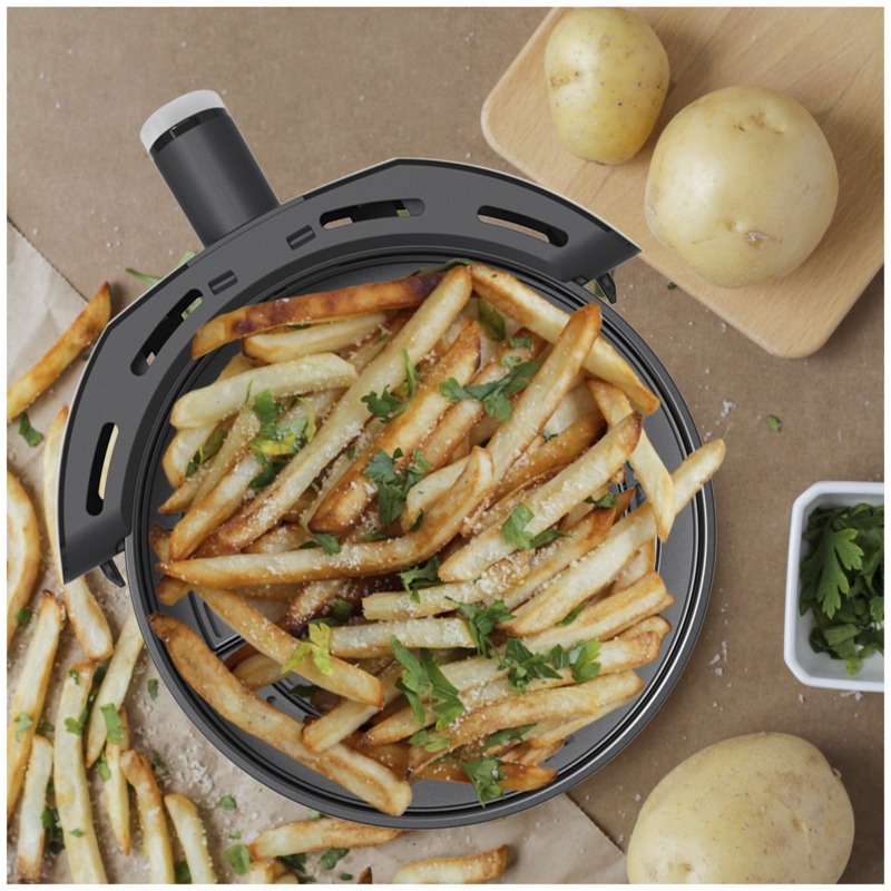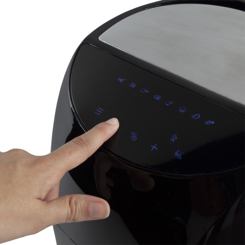 Аэрогриль для приготовления блюд здоровым способом и без масла. Он работает с технологией циркуляции горячего воздуха, который окружает пищу. Встроенный интуитивно понятный сенсорный экран для доступа ко всем функциям. Время регулируется от 0 до 60 минут, а температура — от 80 ºC до 200 ºC. Он имеет 8 различных программ для легкого приготовления пищи и включает в себя декоративную верхнюю пластину из нержавеющей стали и нескользящие ножки. Мощность 1400 Вт. Металл.
