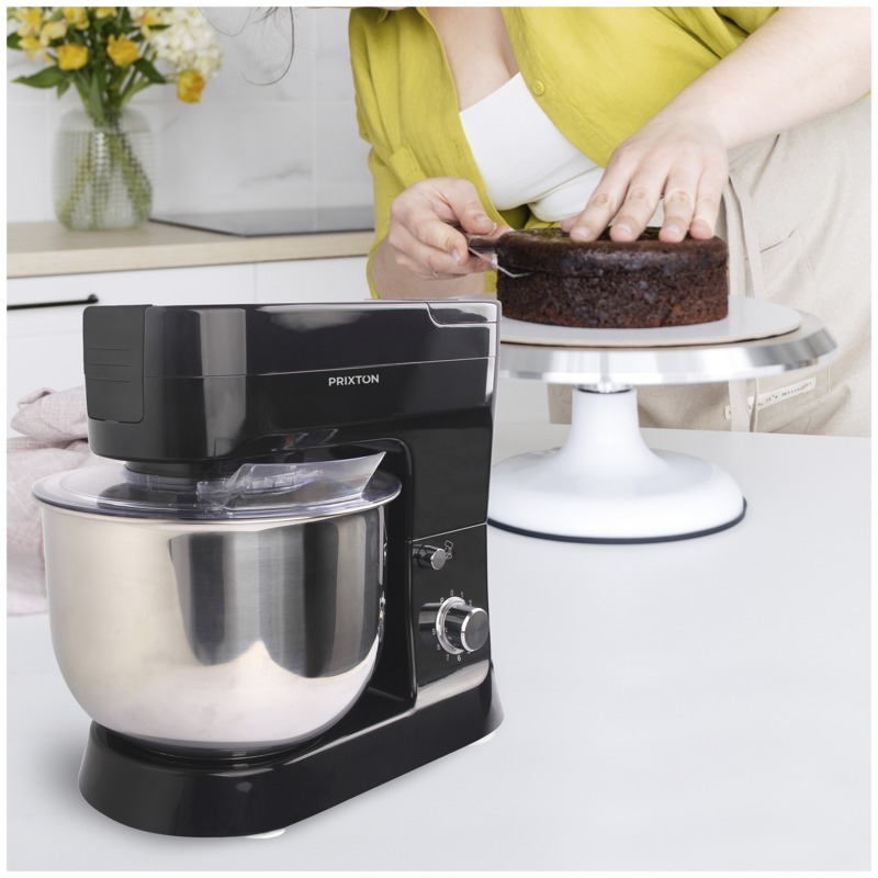 Высокопроизводительный блендер с мотором мощностью 1800 Вт и чашей из нержавеющей стали объемом 8,2 литра. 9 уровней скорости, а также функция ручной регулировки. Блендер имеет множество функций, таких как замешивание, взбивание, смешивание, поднятие и эмульгирование. Аксессуары в комплекте: алюминиевый миксер, алюминиевый крюк и венчик из нержавеющей стали. Также имеется прозрачная крышка для чаши с центральным отверстием, позволяющим добавлять ингредиенты. Изящный и компактный дизайн. . Алюминий, Пластик ABS.