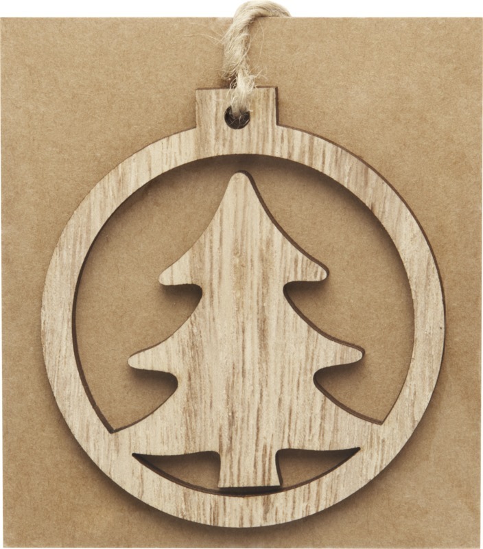 Деревянное украшение круглой формы с деревом внутри. С петлей и шнурком. Индивидуально упакованы с открыткой из крафт-бумаги на обратной стороне. MDF.