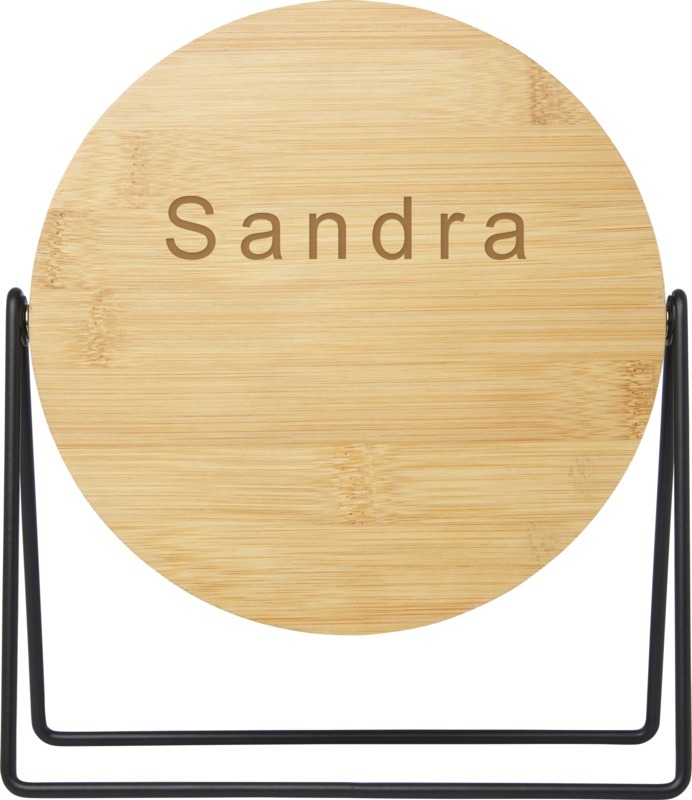 Двустороннее зеркало, вращающееся на 360 градусов, которое можно разместить на туалетном столике или другой горизонтальной поверхности. Зеркало выполнено из бамбука, который добывается и производится в соответствии с требованиями стандартов устойчивого развития. Бамбуковое дерево, Стекло, Сталь.