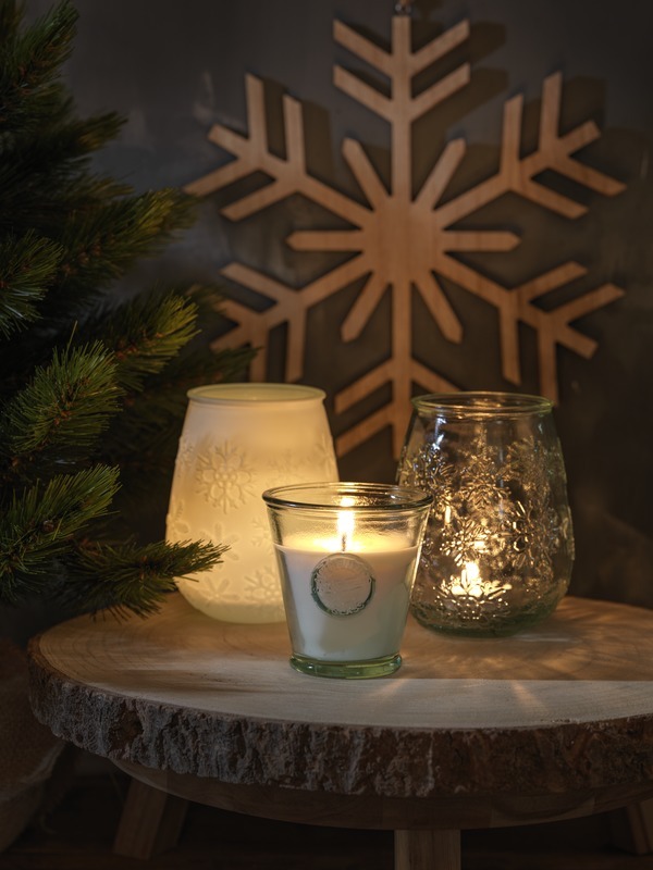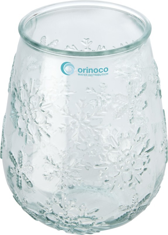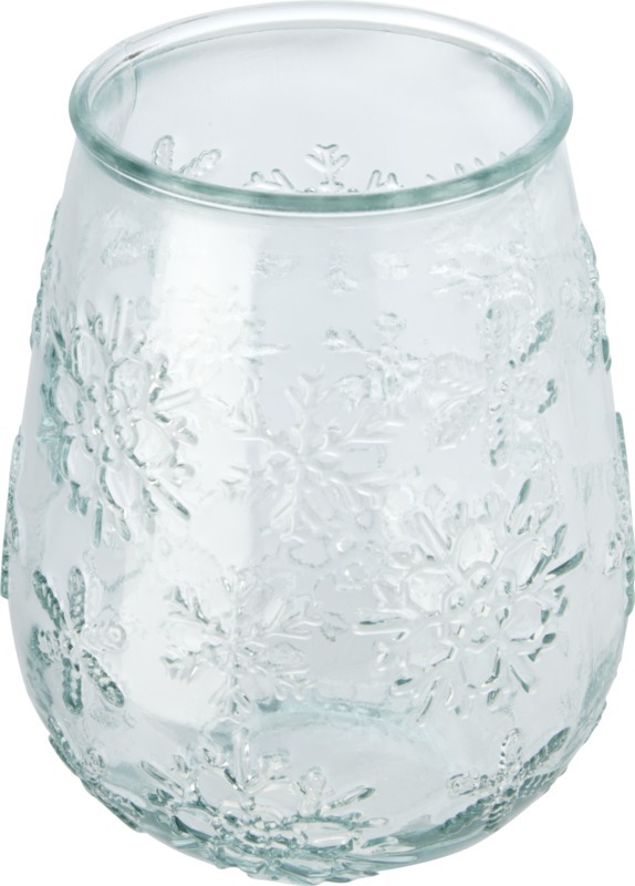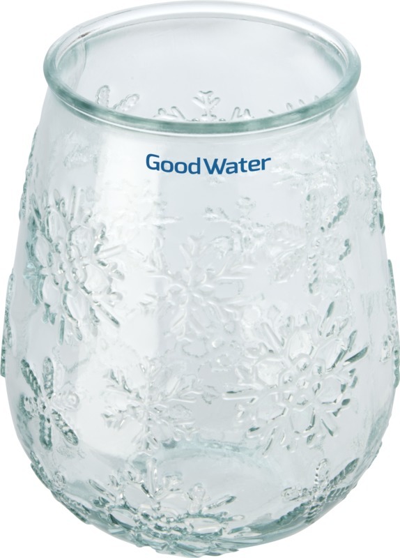 Подставка для чайной свечи из переработанного стекла с эффектом падающих снежинок. Изготовлен из 1 стеклянной бутылки. На изготовление переработанного стекла затрачивается меньше энергии, сырья и добавок, чем на изготовление традиционного стекла. Чайная свеча не входит в комплект. Переработанное стекло.