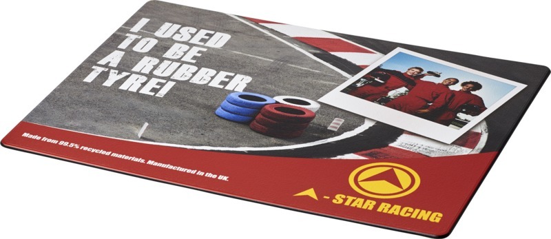 Коврик для мыши предназначен для работы со стандартными шариковыми и оптическими мышками. На 99,5 % изготовлен из переработанных материалов, в том числе 40 % переработанной резины, а также переработанные бумага и пластмасса. Ламинированная бумага, Recycled Plastic, Tyre material. FSC Mix Credit P8 CU-COC-877277.