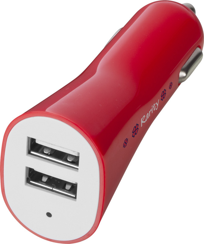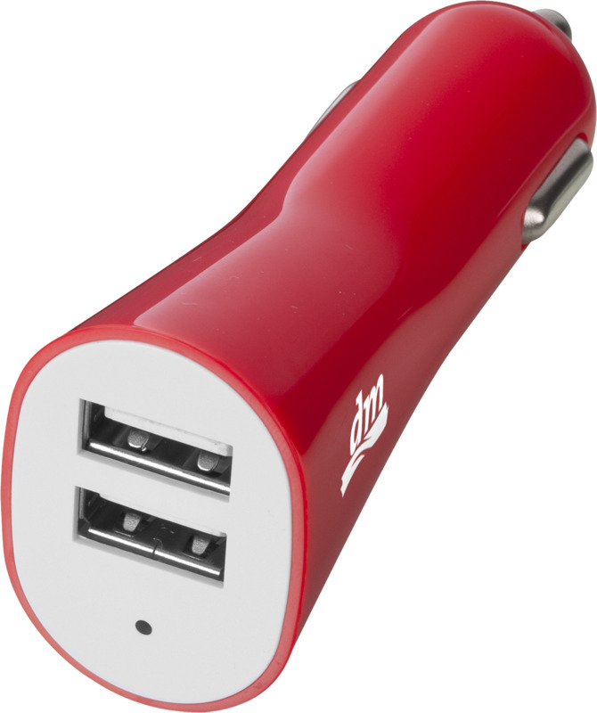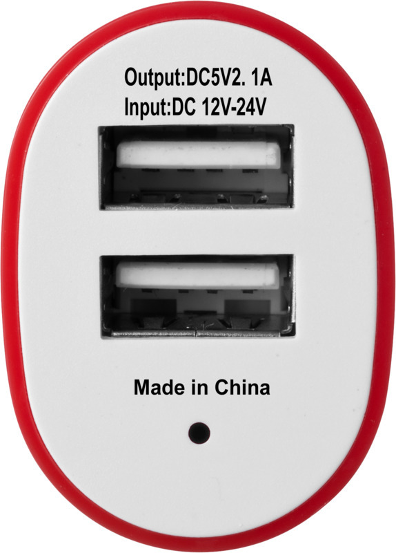 Двойной автомобильный адаптер. Вставляется в гнездо питания для зарядки персональных устройств. Характеристики USB: 5 Вольт / 2,0 Ампер. Входное напряжение: 12-24 В. Пригоден для автомобилей. Пластик ABS.