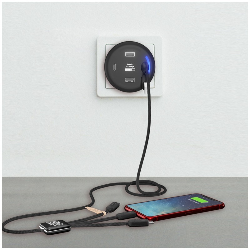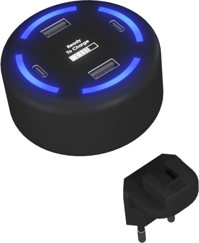 Интеллектуальное домашнее зарядное устройство 4,2 А с мягким резиновым покрытием и подсветкой логотипа. Благодаря портам 5 В/2,4 A можно заряжать до 4 устройств одновременно. Зарядное устройство оснащено разъемами USB и USB-C (2,4 А). Каждый порт имеет синий световой индикатор, который загорается при зарядке устройства. Как только устройство полностью заряжено, индикатор выключается для экономии энергии. В комплект входят вилки для подключения к электросети ЕС и США. Поставляется в подарочной коробке из крафт-бумаги вторичной переработки (9,8 x 12,3 x 5,3 см). Гарантия 3 года. Пластик ABS.
