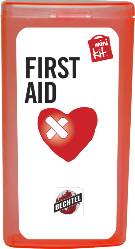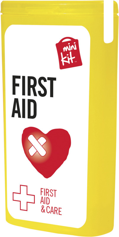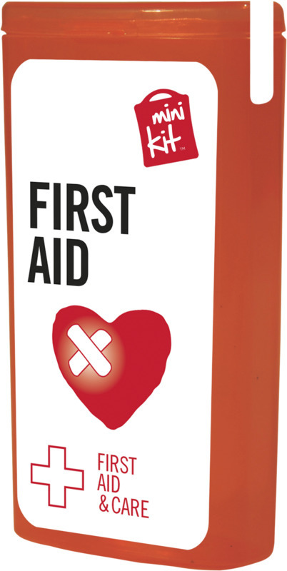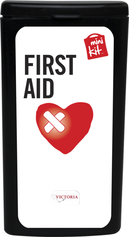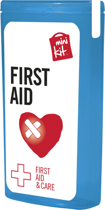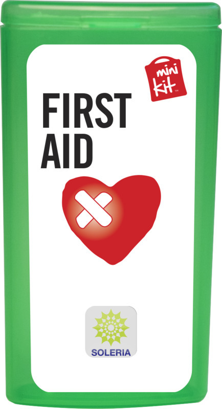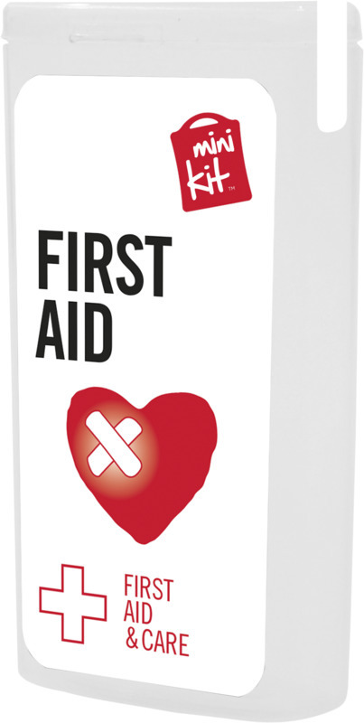 The ideal first aid kit to carry with you. The size of this kit allows you to easily store it in your bag or pocket. With this kit you will always be prepared for small accidents. Contents: 5 wash proof plasters, 2 skin cleansing swabs. All of the first aid and care products within the kit meet all applicable EU regulations. Price includes full colour print. Пластик.