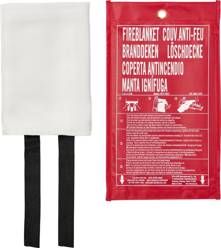Пожарозащитное одеяло в первую очередь предназначено для эффективного тушения небольших пожаров, например, горения одежды, постельного белья, кастрюль и сковородок. Пожарозащитное одеяло размером 100x100 см проверено и сертифицировано в соответствии со стандартом EN 1869:2019. Полиэстер.