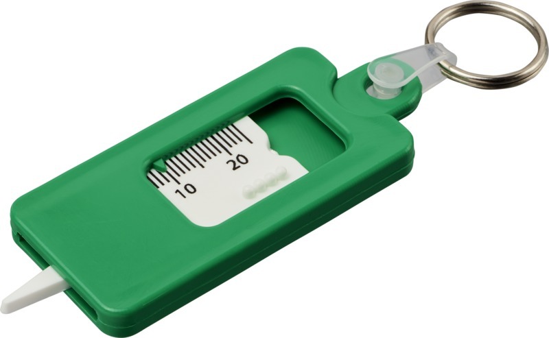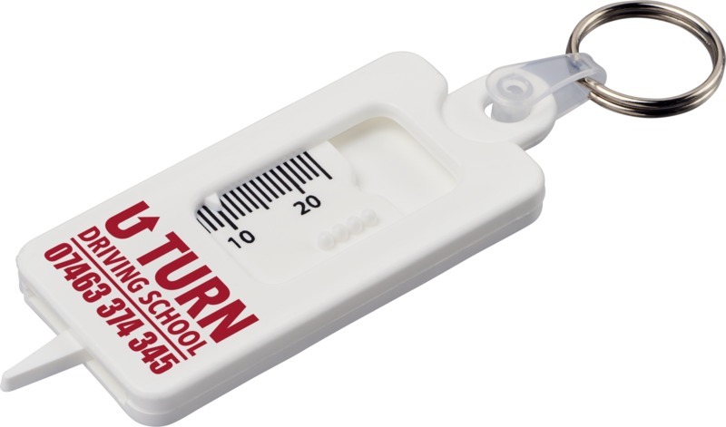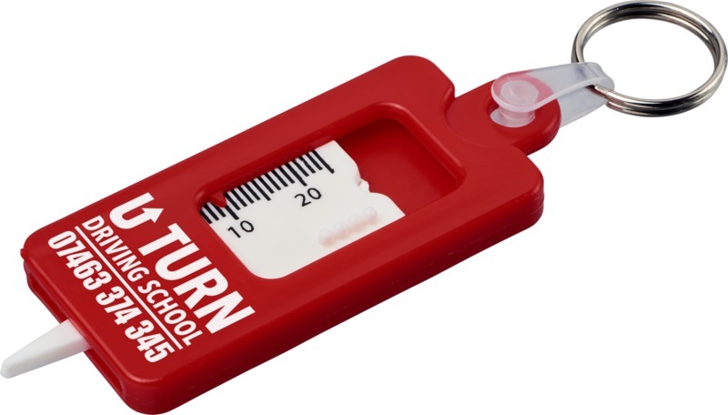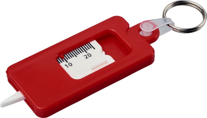 Удобный портативный инструмент, чтобы проверить, является ли глубина протектора шины автомобиля безопасной и находится ли она в установленных законом пределах. Пластик HIPS, Металл.