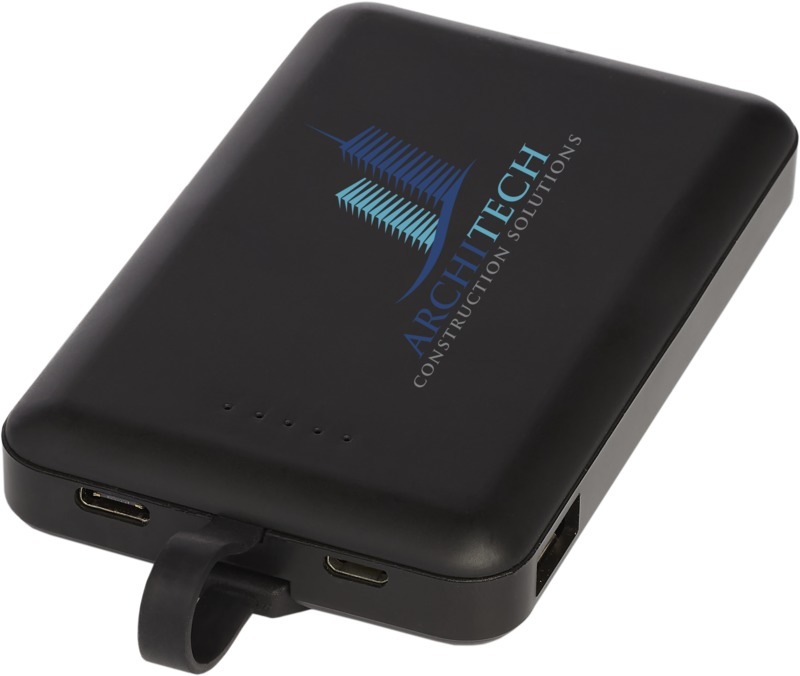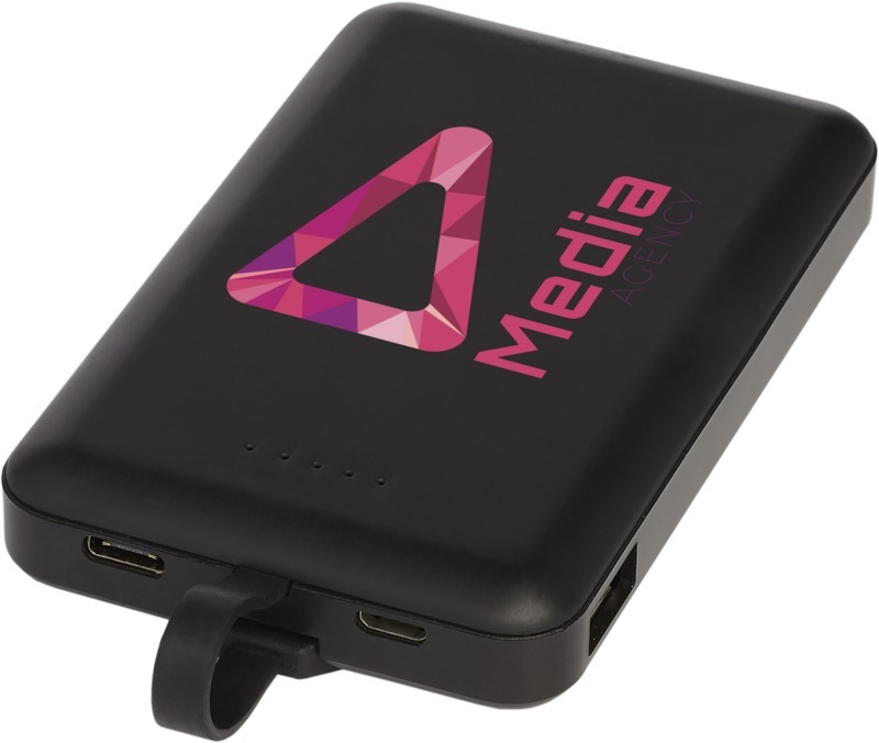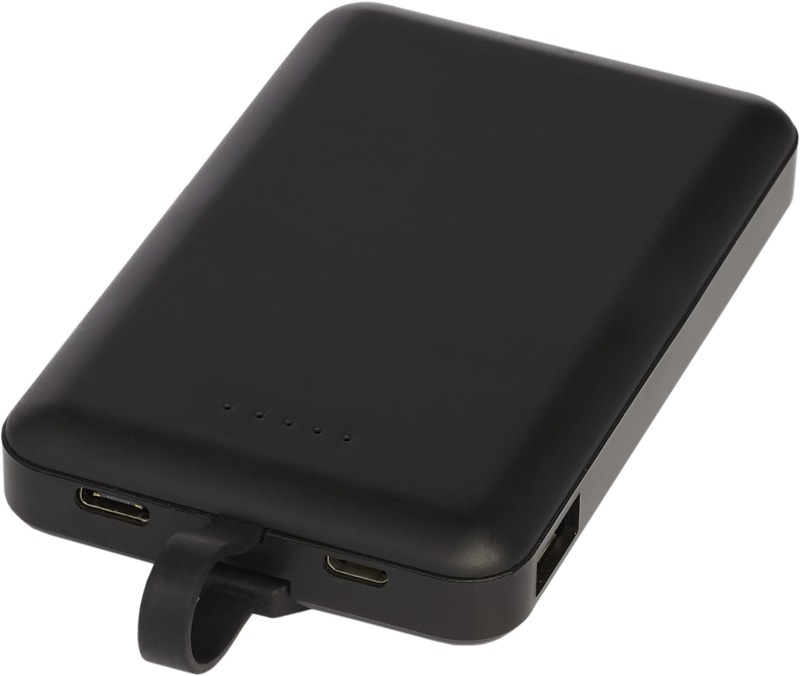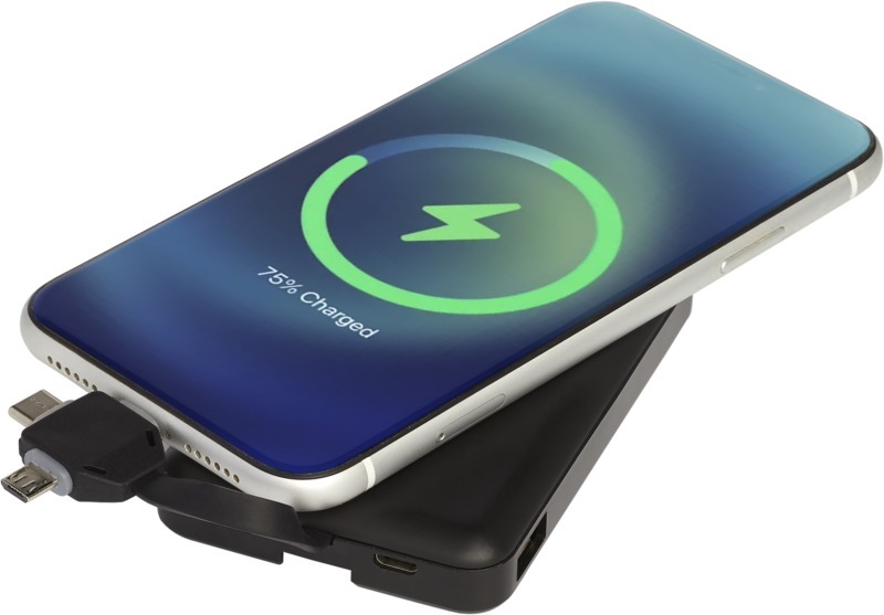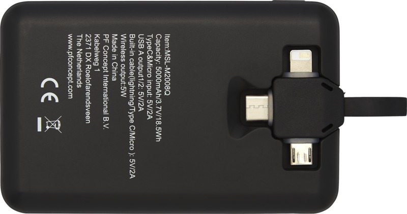 Беспроводное портативное зарядное устройство с универсальным кабелем 3 в 1 и литиевым полимерным аккумулятором А-класса на 5000 мАч, передатчиком беспроводной зарядки и интегрированным кабелем 3 в 1. Устройства можно заряжать с помощью беспроводной зарядки или интегрированного кабеля 3 в 1. Кабель 3 в 1 совместим как с устройствами Apple® iOS, так и с Android. Для обеспечения устойчивости вспомогательные кабели не предусмотрены. Поставляется в подарочной коробке Avenue. Пластик ABS.