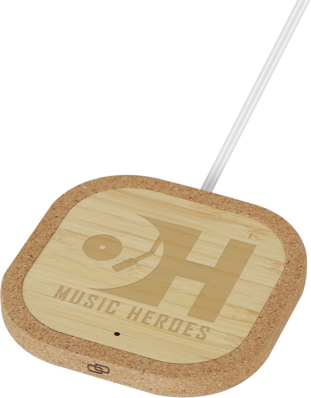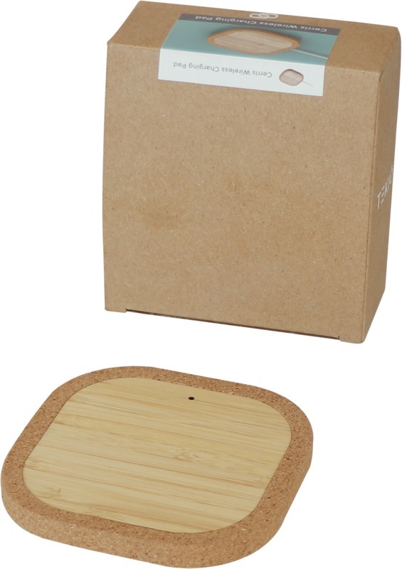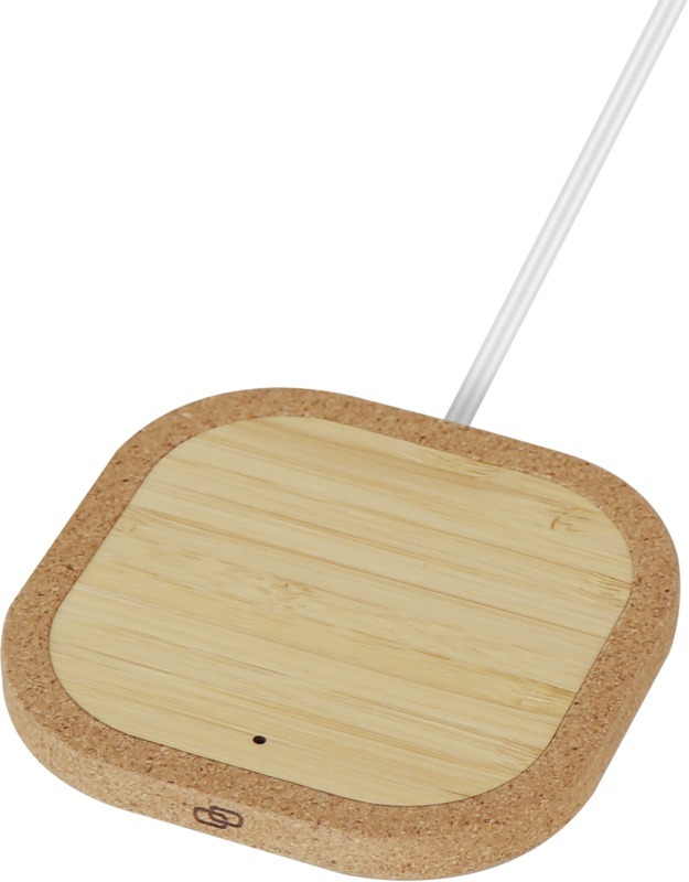 Беспроводное зарядное устройство Cerris мощностью 15 Вт изготовлено из пробкового дуба и бамбука и является одним из наиболее экологичных вариантов беспроводных зарядных устройств. Корпус и область зарядки изготовлены из настоящего пробкового дуба и бамбука. Благодаря выходной мощности беспроводной зарядки до 15 Вт полная зарядка устройства не отнимает много времени. Совместимость со всеми устройствами Qi (iPhone 8 и более поздние версии, устройства Android, поддерживающие беспроводную зарядку). Поставляется с фиксированным термополиэтиленовым кабелем USB-A длиной 100 см. Поставляется в коробке из крафт-бумаги премиум-класса и красочной наклейкой. Поскольку бамбук и пробковый дуб — природные материалы, цвет и размер изделия могут быть разными, что, в свою очередь, может повлиять на итоговый вид печати. Cork.