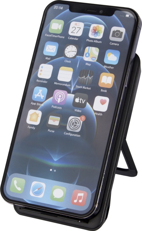 Беспроводное зарядное устройство изовлено из переработанного пластика ABS. Зарядное устройство также можно использовать как подставку для телефона, что делает его идеальным настольным аксессуаром. Подключите зарядное устройство к компьютеру или ноутбуку и положите сверху устройства, чтобы начать зарядку. Мощность беспроводной зарядки составляет 10 Вт (максимум), что обеспечивает быструю зарядку. Совместим со всеми устройствами Qi (iPhone 8 и выше и устройствами Android, поддерживающими беспроводную зарядку). Поставляется в подарочной коробке и с инструкцией по эксплуатации (изготовленных из экологичных материалов). Переработанный ABS пластик.