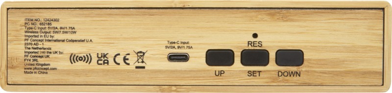 12424302 Minata, бамбуковое беспроводное зарядное устройство с часами