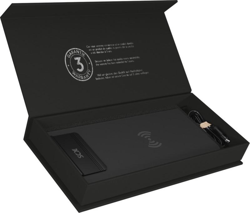 Складной коврик для мыши с подсветкой логотипа и зоной беспроводной зарядки мощностью 10 Вт, изготовленный из переработанного ПЭТ и АБС-пластика. Коврик для мыши совместим с заряжанием QI, он легкий и легко транспортируется благодаря функции складывания. Поверхность покрыта и удобна для использования с любым типом компьютерной мыши. Коврик для мыши имеет несколько магнитов, которые позволяют быстро и интуитивно понятно складывать коврик, также можно сложить коврик для мыши, чтобы создать подставку для вашего мобильного телефона. Напечатанный логотип загорается, когда продукт включается. Поставляется с зарядным кабелем из переработанного ПЭТ-пластика. Упаковывается в черную подарочную коробку (27,5 x 12,5 x 2,5 см) с магнитной застежкой. Размер в сложенном виде: 22 х 9,5 х 1,4 см. Размер в развернутом виде: 22 x 30 x 0,4 см. Гарантия 3 года. Recycled leather, Пластик ABS, Recycled TPE.