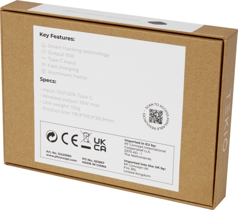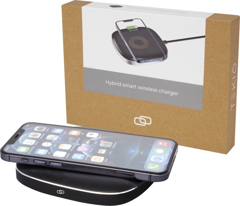 С умным беспроводным зарядным устройством Hybrid исчезнет необходимость размещать свое устройство на определенной части зарядного устройства. Благодаря технологии умного обнаружения зарядная катушка автоматически подстраивается под ваше устройство и начинает процесс зарядки. Стильный дизайн с прозрачным корпусом и алюминиевой рамой. Благодаря выходной мощности беспроводной зарядки до 15 Вт полная зарядка устройства не отнимает много времени. Совместимость со всеми устройствами Qi (iPhone 8 и более поздние версии, устройства Android, поддерживающие беспроводную зарядку). Поставляется в коробке из крафт-бумаги премиум-класса и красочной наклейкой. Пластик ABS, Алюминий.