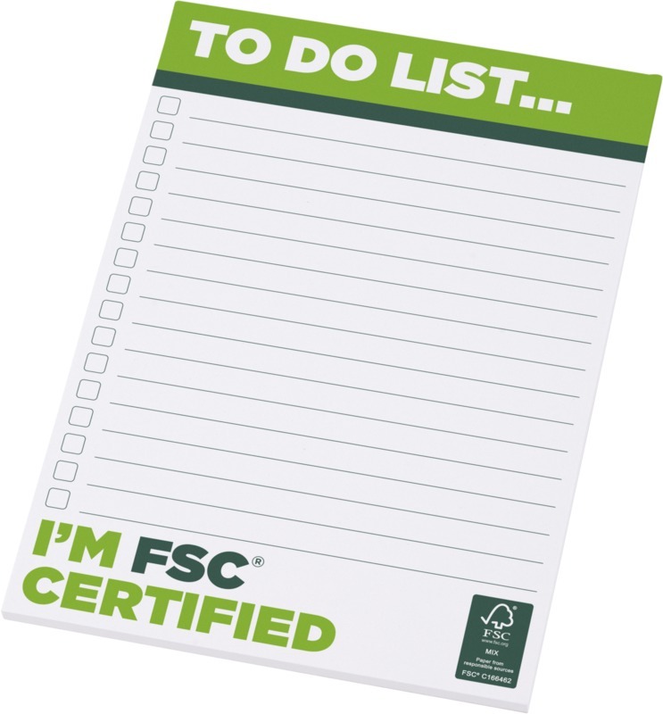 Белый блокнот Desk-Mate® формата А5. Состоит из чистых листов 80 г/м². Стандартный вариант состоит из 50 листов, а также доступно по 25 и 100 листов. На каждый лист можно нанести рисунок. Размеры листа: 148x210мм. Бумага, 80 g/m2, Картон, 280 g/m2. FSC Mix Credit P7.2 CU-COC-877277.