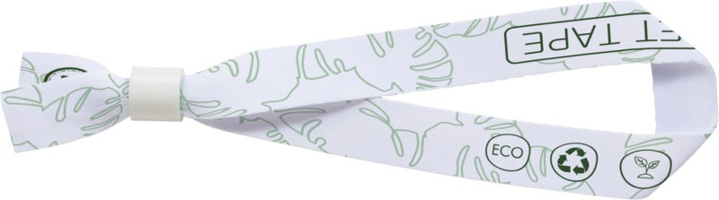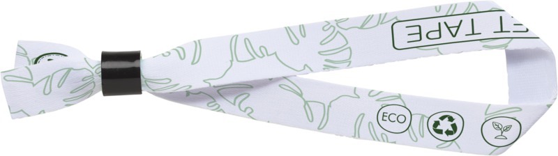 Браслет с нанесением рисунка по технологии сублимации и пластиковой затяжкой. Изготовлен из переработанного ПЭТ. Имеет яркий принт с одной стороны. Затяжка на одну сторону не позволяет браслету соскочить с руки, что делает его идеальным пропуском на вечеринки и мероприятия. Переработанный Полиэстер, Переработанный PET пластик.