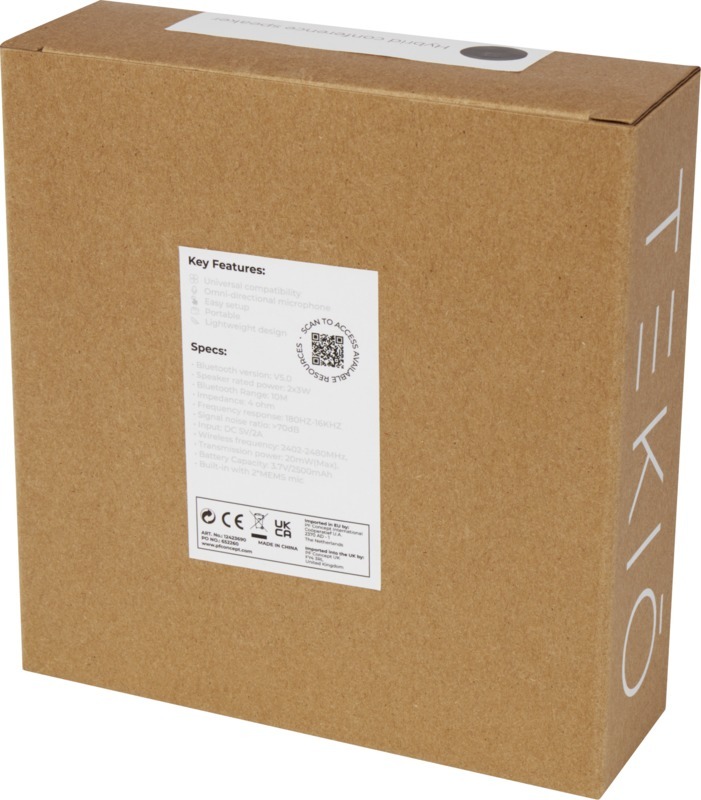 Этот компактный и легкий динамик для конференций идеально подходит как для домашнего, так и для офисного использования. Соединение Bluetooth® 5.0 обеспечивает низкое энергопотребление и радиус действия до 10 метров. Динамик оснащен перезаряжаемым аккумулятором 2500 мАч, который обеспечивает до 4 часов воспроизведения на максимальной громкости без подзарядки. Имеет 2 встроенных МЭМС-микрофона, которые могут отчетливо уловить ваш голос даже при наличии фонового шума. Кроме того, благодаря высокой выходной мощности динамика, составляющей 2 х 3 Вт, его можно использовать в качестве обычного динамика Bluetooth® для качественного воспроизведения музыки. Поставляется в премиальной коробке из крафт-бумаги с красочной наклейкой. Пластик ABS.