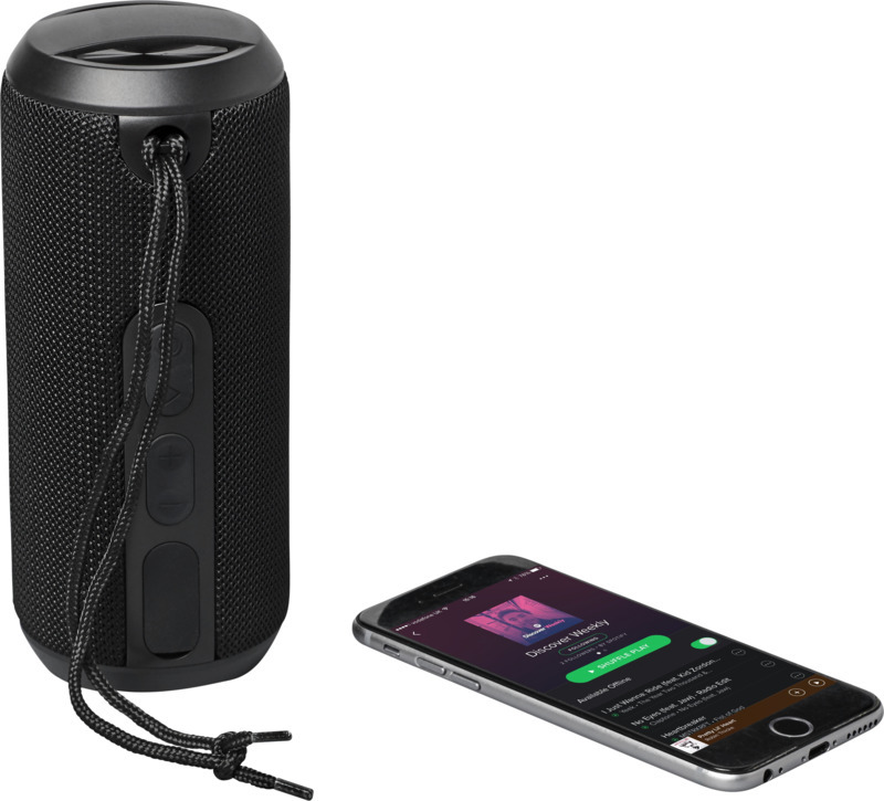 Наслаждайтесь любимой музыкой где бы вы ни были! Водонепроницаемую колонку Rugged Fabric с функцией Bluetooth можно использовать в бассейне, в походе или на вечеринке на открытом воздухе. Колонка оснащена двумя динамиками с выходной мощностью 5 Вт каждый и цифровым устройством обработки звука для воспроизведения качественного звука. Водонепроницаемая колонка Rugged Fabric с функцией Bluetooth® соответствует стандарту водонепроницаемости IPX6. Это означает, что ее можно оставить под дождем или уронить в воду без повреждений. В комплект входит кабель для зарядки micro USB и ремешок для переноски. Рабочий диапазон Bluetooth™ составляет 10 метров. Колонка позволяет слушать музыку в течение 4 часов на максимальной громкости на одной зарядке. Время зарядки – 2,5 часа. Она оснащена встроенным микрофоном и кнопками для контроля звука для громкой связи. Пластик ABS.