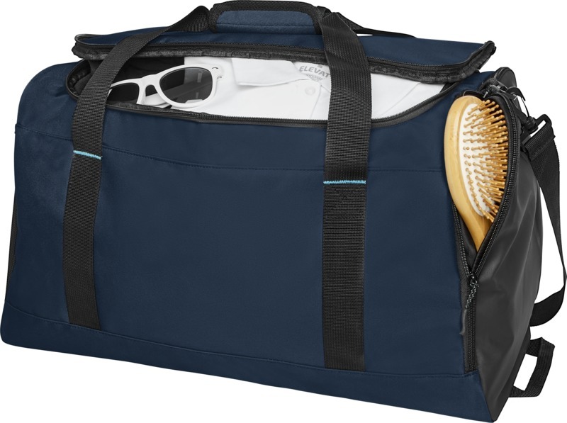 Спортивная сумка, изготовленная на 55 % из переработанных материалов и ПЭТ, сертифицированного по GRS. Имеет большое основное отделение на молнии, усиленную основную панель, сетчатый боковой карман и расширяющийся карман для влажных/сухих вещей с застежкой на молнии. Поставляется с небольшим внутренним карманом-органайзером на молнии, съемным наплечным ремнем со смягчающей прокладкой, ручками с мягкой застежкой-липучкой и дополнительной ручкой на нижней части с правой стороны. 300DGRS certified recycled polyester.