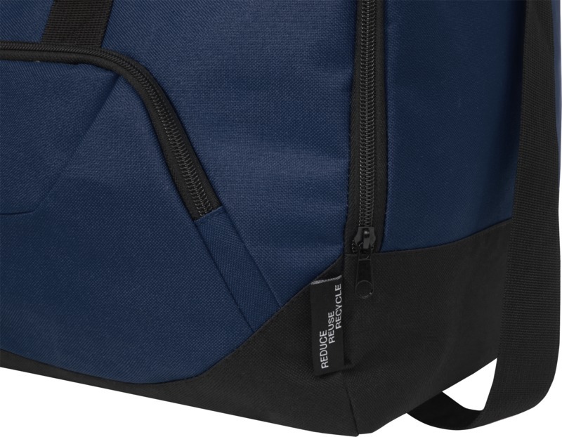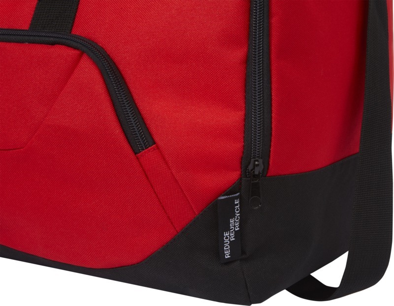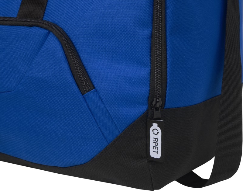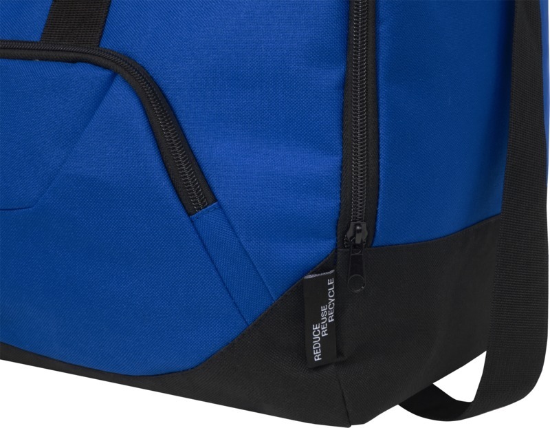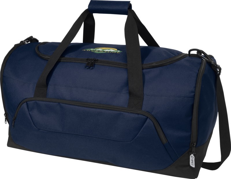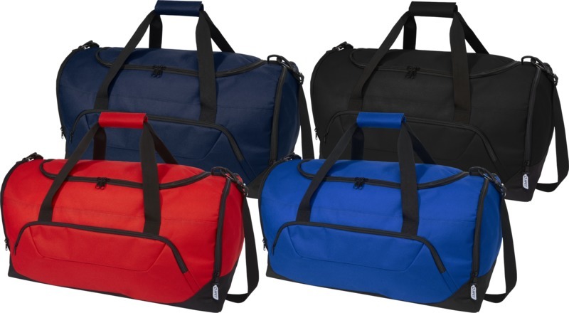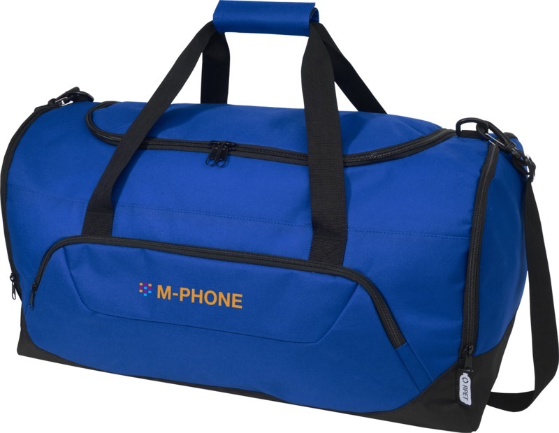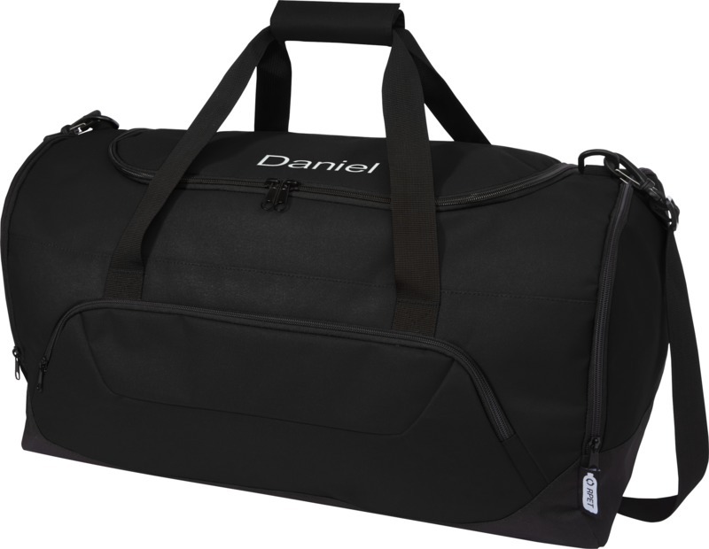 Прочная спортивная сумка, изготовленная на 100% из переработанного пластика, предназначенного для повторного использования, что способствует снижению количества пластиковых отходов. С большим основным отделением и передним карманом на молнии, мягким плечевым ремнем и мягкими ручками. Для изготовления этой сумки было переработано около 27 бутылок. 600D GRS certified recycled polyester.