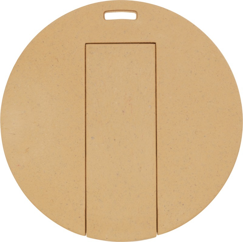 Круглый USB-накопитель из биоразлагаемого материала с тонким корпусом, который удобно носить с собой. Изготовлен из кукурузного пластика. . Кукурузный пластик.