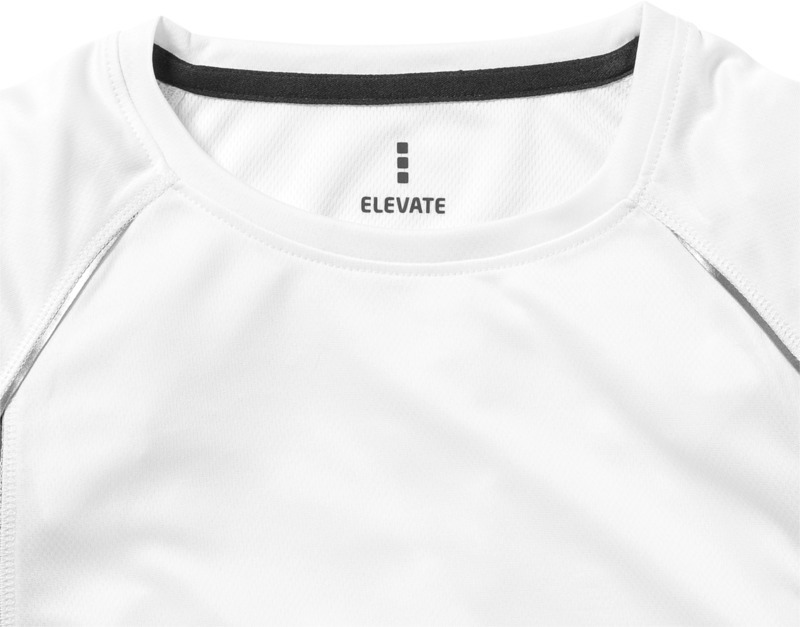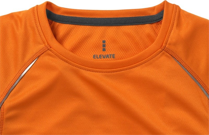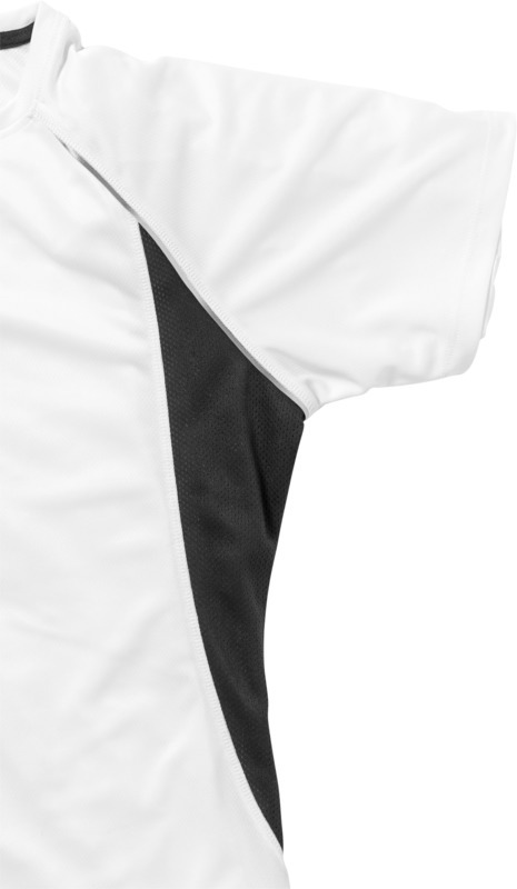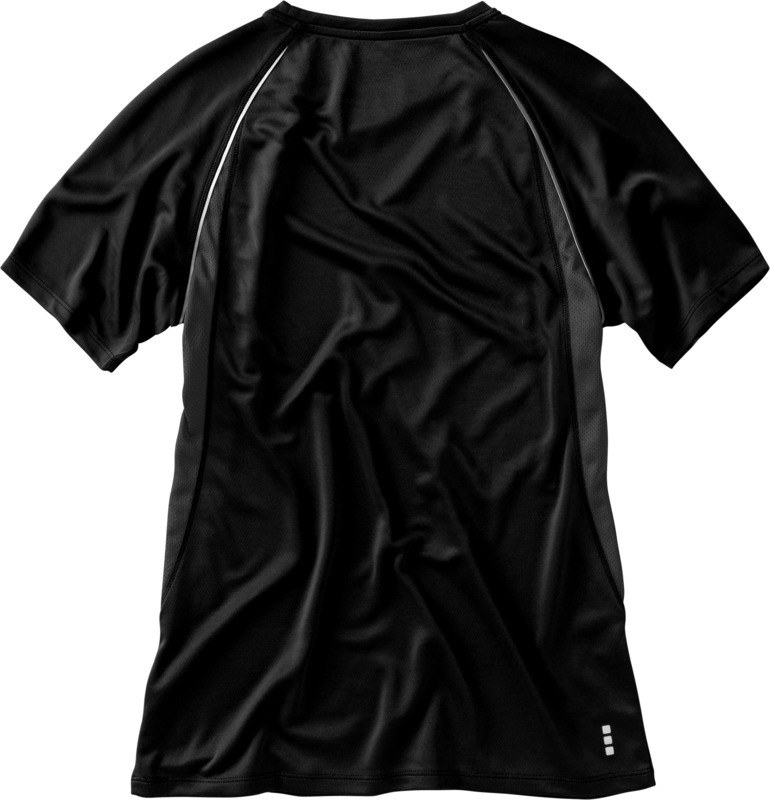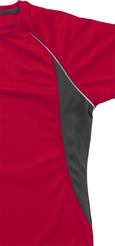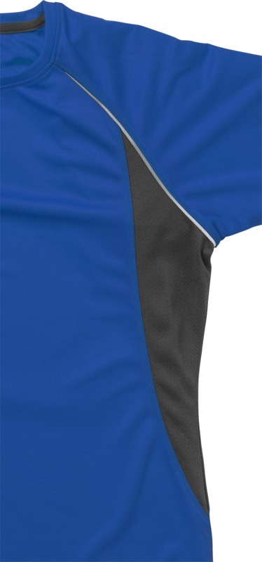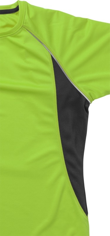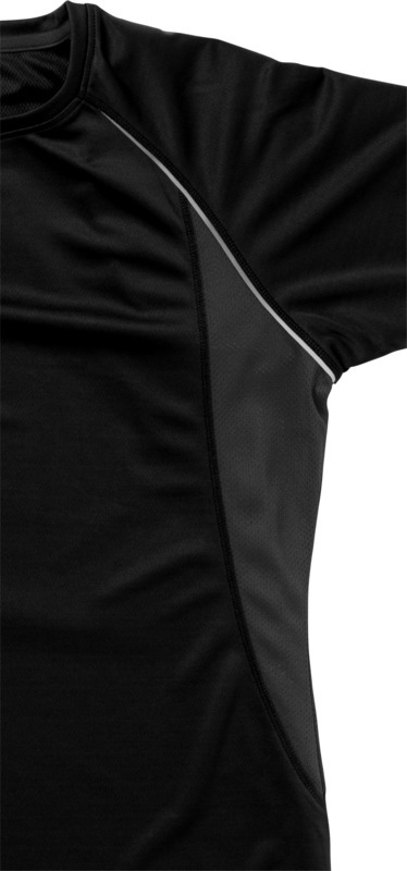 Воротник из ткани изделия. Круглый вырез горловины. Боковые панели из сетчатой ткани. Отражающие детали. Рукава реглан. Комфортный ярлык-трансфер на изделии. Тонкий шов. Атласный кант по линии горловины. Сетчатая ткань с покрытием cool fit100% Полиэстер, 145 g/m2.