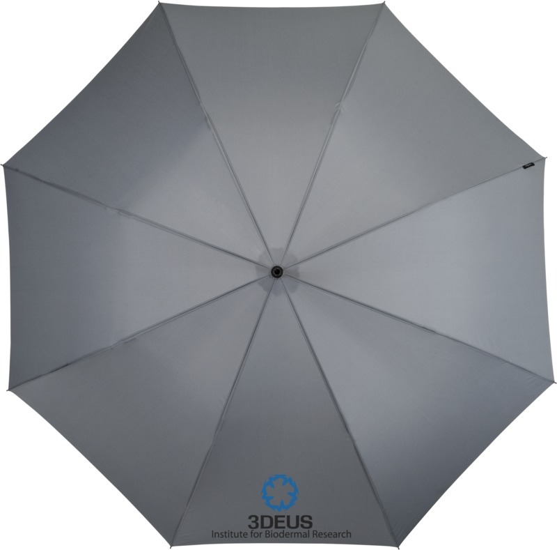 Эксклюзивный зонт с металлической тростью, стекловолоконными спицами, пластиковой прорезиненной ручкой. Предлагается в чехле под цвет зонта. Полиэстер Эпонж.