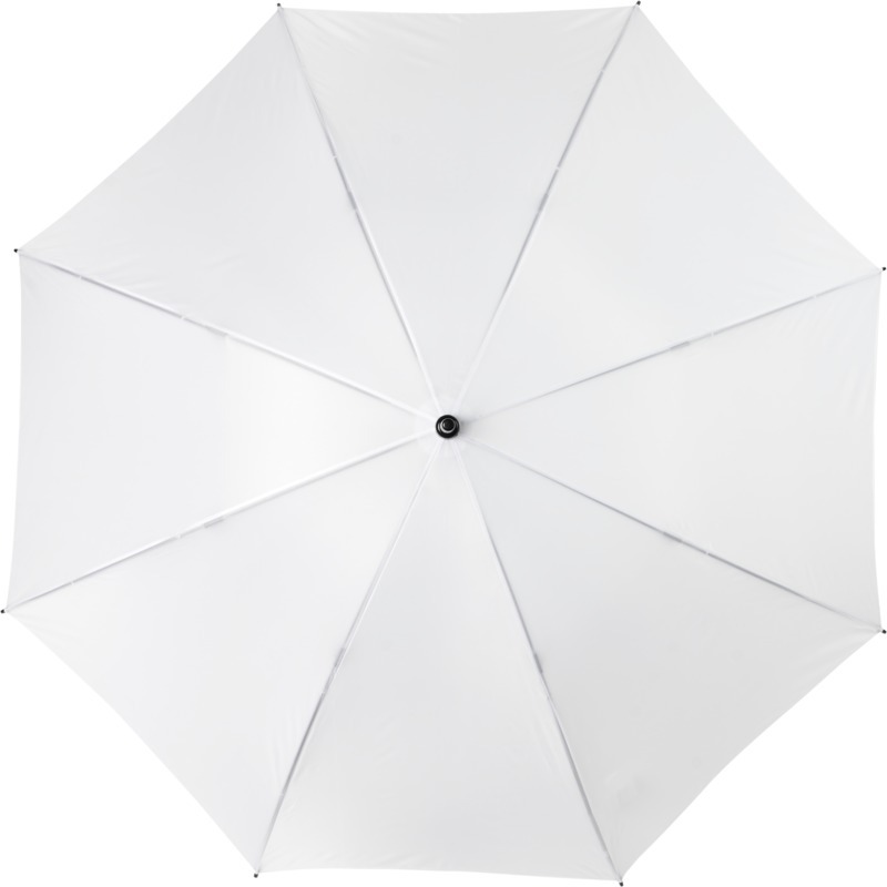 Зонт с ручным раскрытием и куполом из полиэстера. Оснащен прочным металлическим стержнем, высококачественной цельной рамой из стекловолокна, обеспечивающей максимальную гибкость в ветреную погоду. Изогнутая ручка из ЕВА, пластиковая верхняя часть и наконечники. Доступен в различных модных цветах с большой зоной для декорирования на каждой панели. Полиэстер.