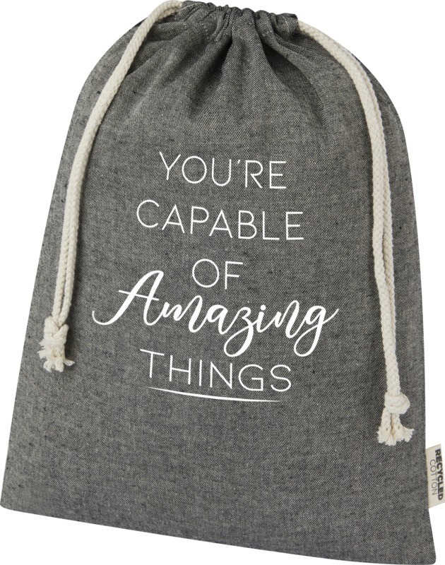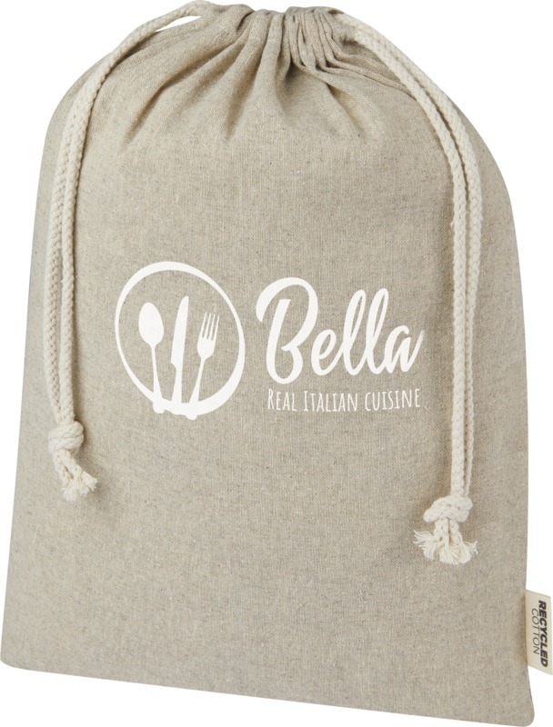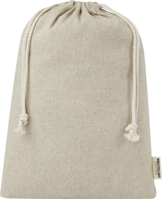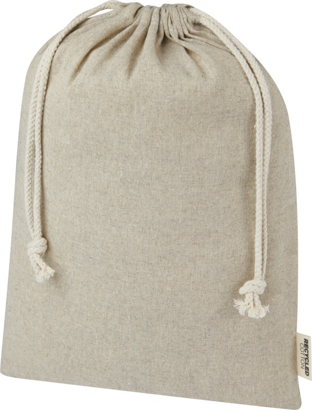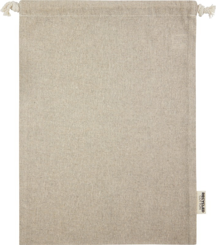 Подарочная сумка из хлопка, переработанного по стандарту GRS, с хлопковым шнурком для затягивания. Идеально подходит для подарков или хранения предметов. Размер: 30 x 42 см. Recycled cotton.