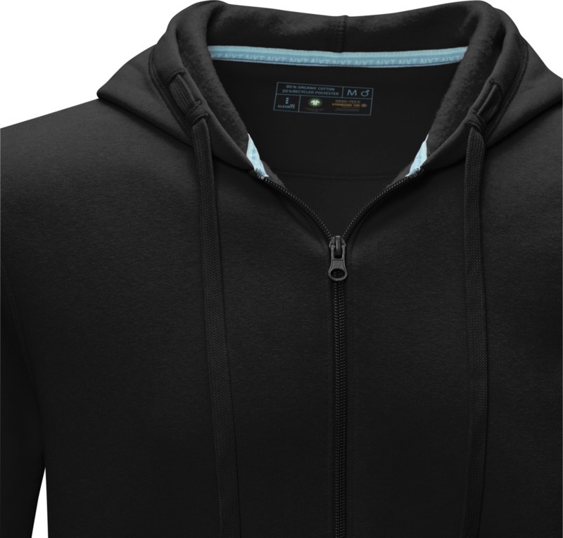 Экологически безопасная акционная одежда. С расположенной по центру молнией, сертифицированной GRS. Имеет капюшон со шнурком, которые отвечают стандарту GOTS. Карман "кенгуру". Внутренняя сторона покрыта ворсом. С манжетами из гладкого трикотажа в рубчик. С подшивкой из гладкого трикотажа в рубчик. Двухцветный воротничок со символикой. В форме полумесяца. Главный лейбл нанесен методом термоприклеивания, удобным для размещения рисунков на ткани. Трикотаж80% Органический хлопок с сертификатом GOTS, 20% GRS certified recycled polyester, 280 g/m2.