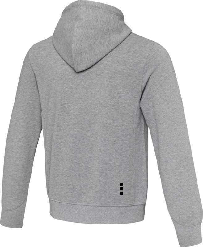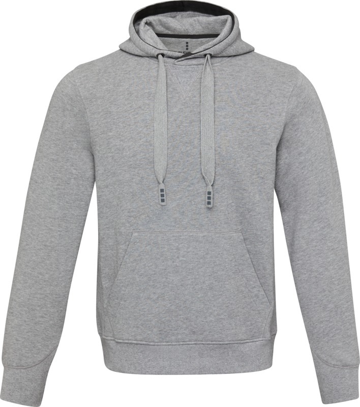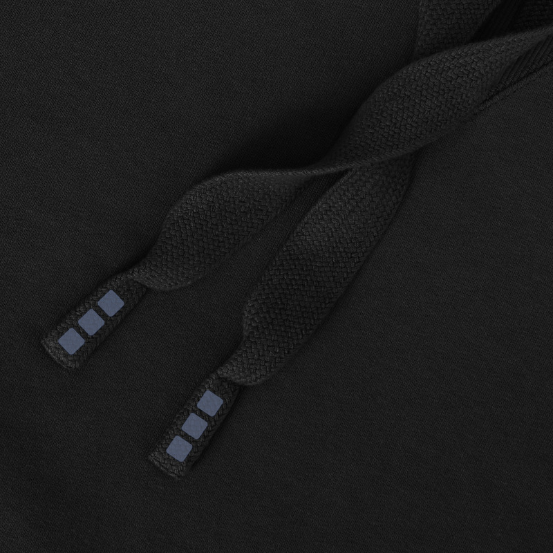 Боковые панели из гладкого трикотажа в рубчик. С V-образной вставкой из гладкого трикотажа в рубчик в центральной части. Манжеты из гладкого трикотажа в рубчик с V-образной формой. С подшивкой из гладкого трикотажа в рубчик. Капюшон на кулиске. Карман "кенгуру". В форме полумесяца. Подкладка для капюшона из тонкого гладкого трикотажа. Выгравированные старинные серебряные люверсы. Атласная лента на шее. Лента контрастного цвета с рисунком «елочка». Ворсованная внутренняя часть для ощущения мягкости, тепла и комфорта. Трикотаж80% BCI cotton, 20% Полиэстер, 300 g/m2.