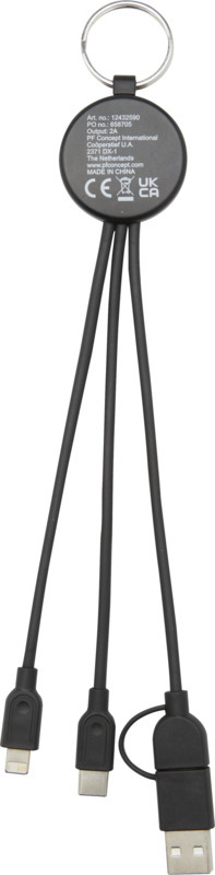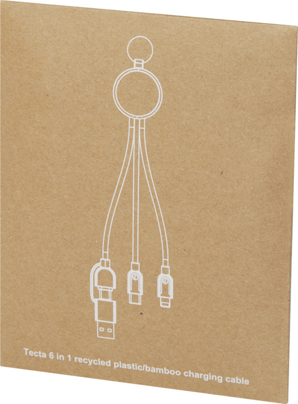 12432590 Кабель для зарядки Tecta «6 в 1» из переработанного пластика/бамбука с брелком