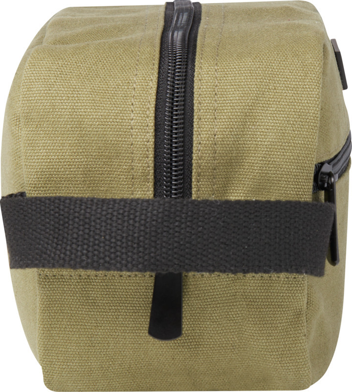 Косметичка из переработанного холста, сертифицированного по стандарту GRS, с подкладкой из переработанного РЕТ-пластика Имеет передний карман на молнии и одно главное отделение на молнии с карманами для организации, а также удобную лямку. Декоративная металлическая пластина может придать логотипу сияние благодаря утонченному матовому покрытию. Емкость: 3,5 литр. 80% GRS certified recycled cotton, 20% Хлопок, 330 g/m2.