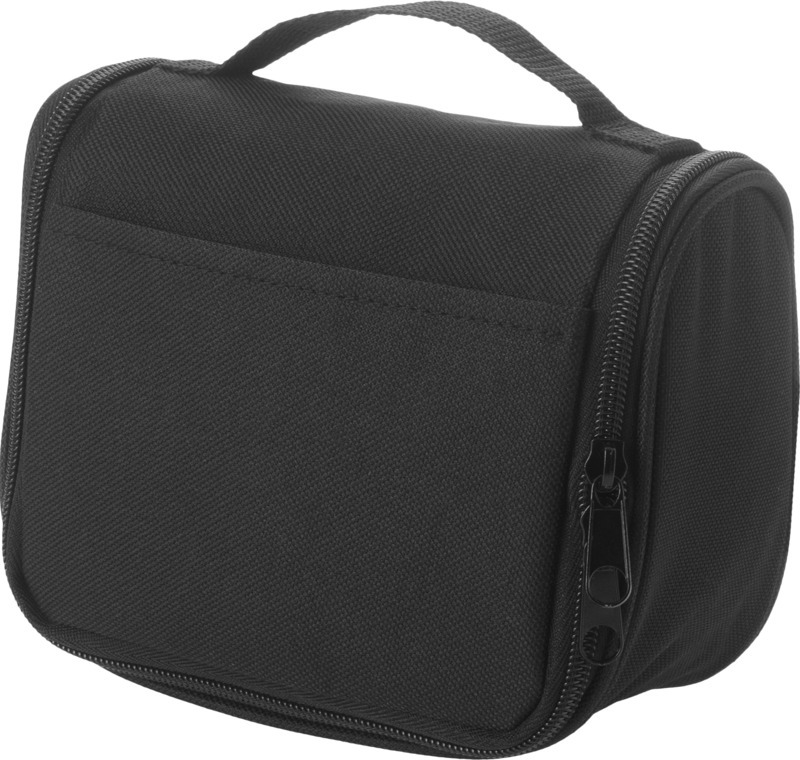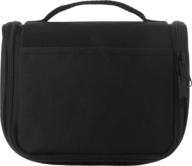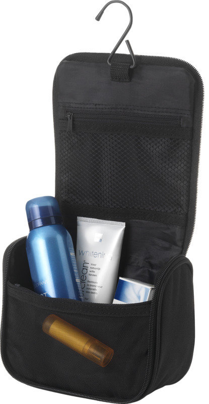 Компактная и удобная косметичка с металлическим крючком. Основное отделение с карманами на резинке для косметических принадлежностей и удобные разделители из сетки. 600DПолиэстер.