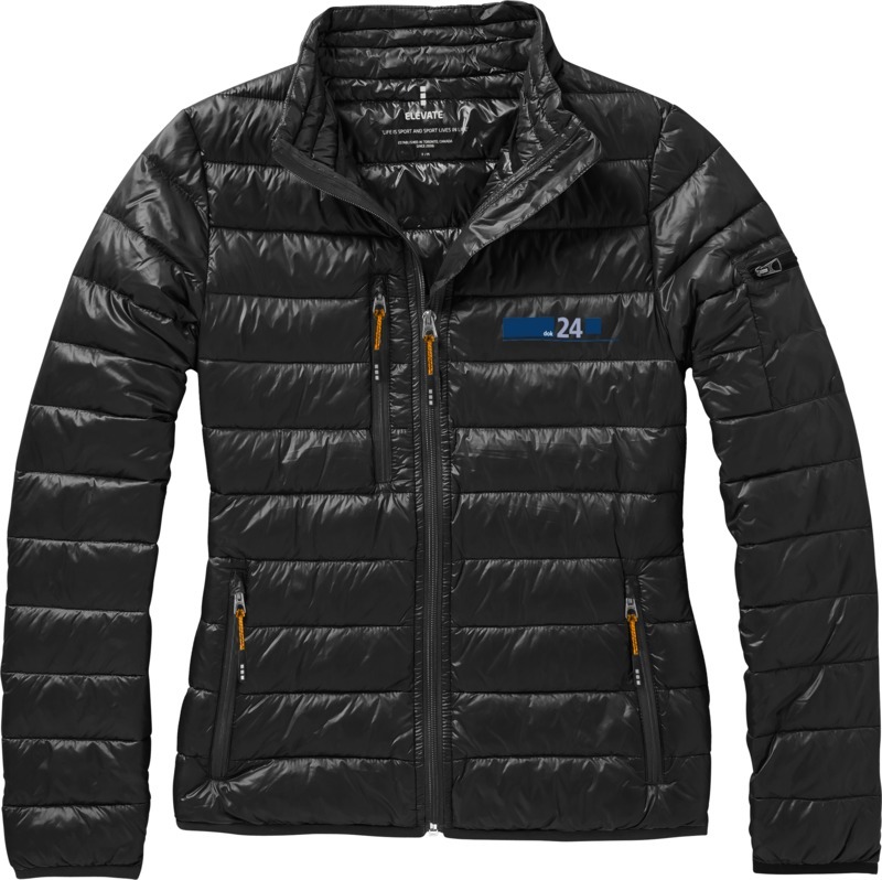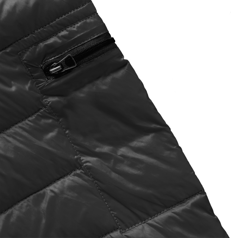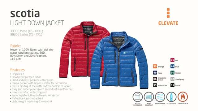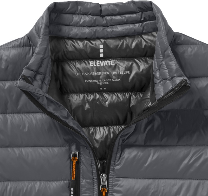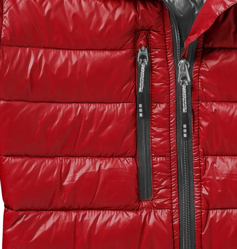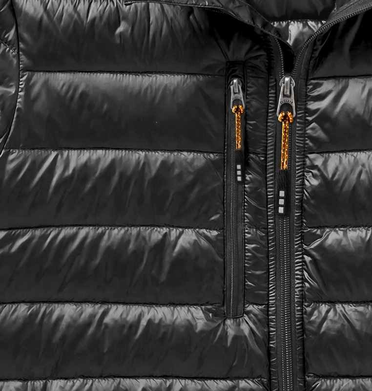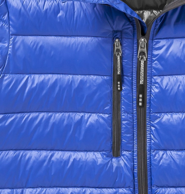 Dull cire 20D woven with water repellent finish of 100% Nylon, Padding/filling, Down insulation: Responsible Down Standard (RDS) of 90% Down and 10% Feathers, 115 g/m2