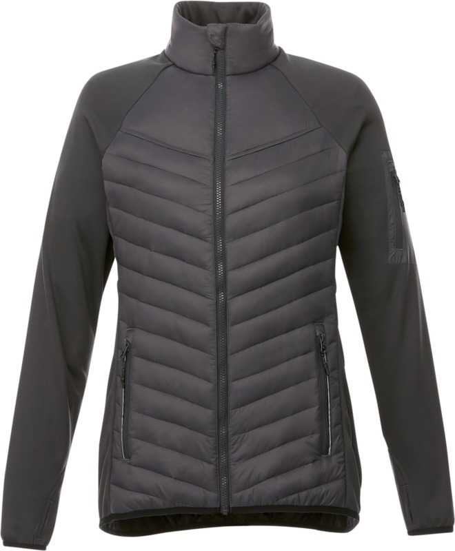 Женская гибридная утепленная куртка Banff - идеальное слияние стиля и производительности. Внутренний штормовой клапан гарантирует, что ветер не будет проникать сквозь куртку, а опущенный назад подол добавляет дополнительный штрих для дополнительного тепла. Эластичная вязка контрастного цвета придает стильный акцент и обеспечивает надежную посадку. Тканый материал куртки dull cire 380T с водоотталкивающей и пухонепроницаемой отделкой изготовлен из нейлона (38 г/м2). Контрастная ткань - трикотаж интерлок из полиэстера и эластана (245 г/м2), добавляющий гибкость и комфорт. Утеплитель из искусственного пуха, выполненный из полиэстера, обеспечивает легкое тепло, идеально подходящее для прохладных дней. Эта куртка имеет приталенный фасон для создания женственного образа. Тканый 380Т с пропиткой Cire100% Нейлон, 38 g/m2, Contrast fabric, Интерлок94% Полиэстер, 6% Эластан, 245 g/m2, Padding/filling, fake down insulation100% Полиэстер.