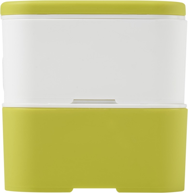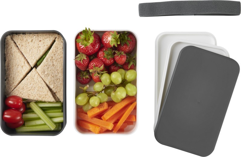 Порадуйте себя этим двухслойным ланчбоксом MIYO ! Состоящий из одного или двух оснований объемом 700 мл, он имеет много места для бутербродов, фруктов, салатов и многого другого, и все это удерживается на месте благодаря ремешку из переработанного ПЭТ. Доступны другие цветовые комбинации и аксессуары, такие как ложко-вилка и внутренний отсек, для получения дополнительной информации свяжитесь с нами. Подходит для использования в микроволновке, мытья в посудомоечной машине, не содержит BPA и полностью пригоден к переработке. Сделано в Великобритании и упаковано в экологически безопасный пакет. Пластик PP.