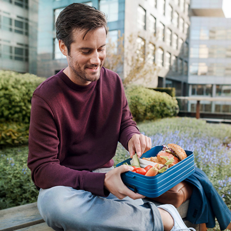 Ланч-бокс с герметичным уплотнительным кольцом, позволяющим поддерживать свежесть продуктов и сохранять их вкус. Вмещает 8 бутерброда. В комплект входит разделитель. Объем — 1,5 литра. Можно мыть в посудомоечной машине. Не содержит БФА. Пластик ABS.
