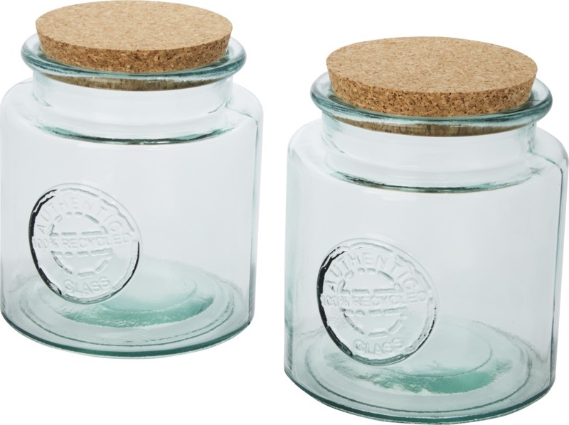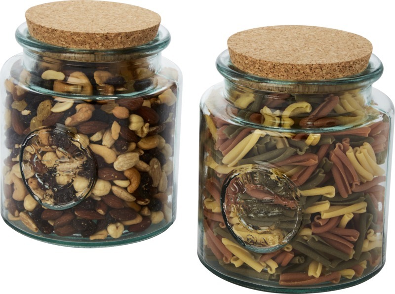 Набор из 2 контейнеров для сухих продуктов объемом 1500 мл, изготовленный из переработанного стекла, с пробковой крышкой. Изготовлен из 3 стеклянных бутылок. На изготовление переработанного стекла затрачивается меньше энергии, сырья и добавок, чем на изготовление традиционного стекла. Размер контейнера: высота 15 см, диаметр 14 см. Переработанное стекло, Cork.