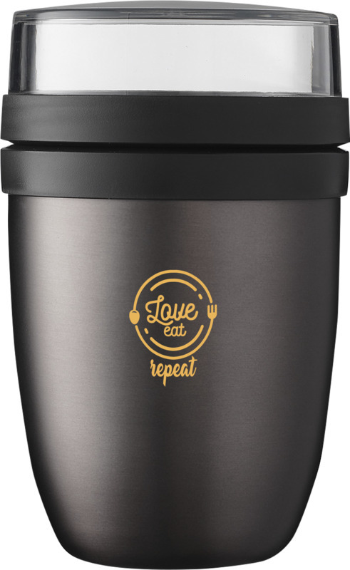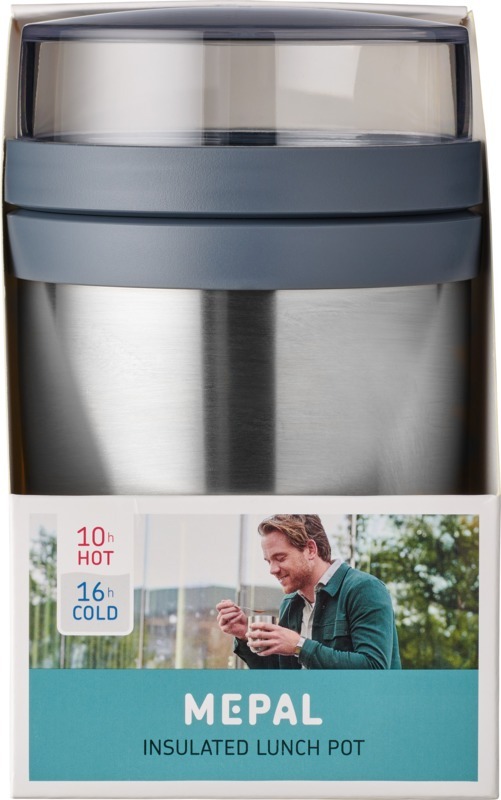 Термоизолированный ланч-бокс с двумя раздельными отделениями, позволяющими хранить различные продукты отдельно друг от друга. Оба контейнера имеют отдельную крышку, чтобы ингредиенты не смешивались. Пища останется горяей в течение 10 часов и холодной в течение 16 часов. Для того чтобы пища оставалась горячей или холодной как можно дольше, рекомендуется перед наполнением ополаскивать ланч-бокс горячей или ледяной водой. Объем верхнего прозрачного контейнера составляет 200 мл, что соответствует примерно 75 граммами твердой пищи. Емкость нижнего контейнера составляет 500 мл. Ланч-бокс изготовлен из прочного материала, его внешняя поверхность остается прохладной и сухой. Рекомендуется мыть вручную. Пластиковые части крышки можно мыть в посудомоечной машине. Герметичный. Не содержит БФА. Пластик PP, нержавеющая сталь, PCTG Plastic.
