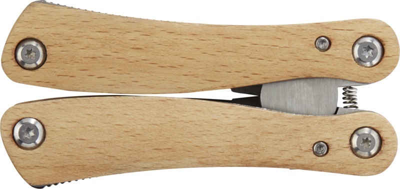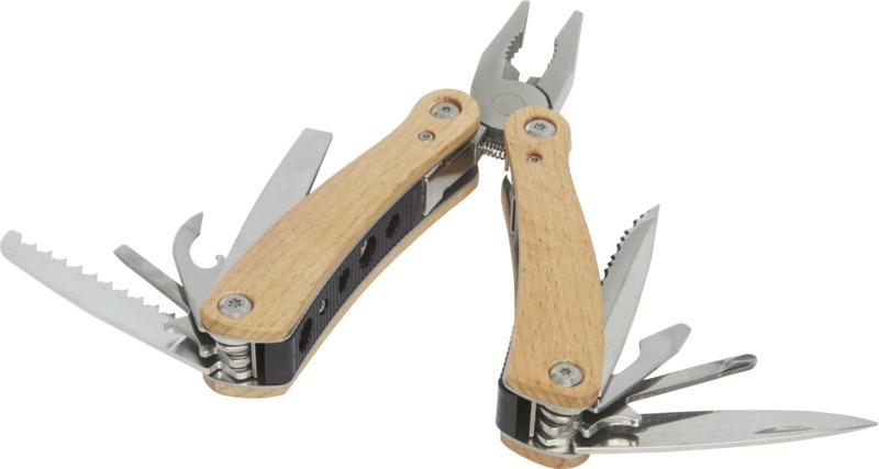 Прочный и долговечный большой многофункциональный инструмент из высококачественной нержавеющей стали с ручками из буковой древесины. Это обязательный инструмент для любого скаута, мастера и любителя отдыха на природе. Имеет 12 функций: плоскогубцы с большими концами, стандартные плоскогубцы, кусачки, зазубренное лезвие, средний нож, крестообразная отвертка, открывалка для бутылок и банок, плоская отвертка, плоская отвертка среднего размера, пила и напильник, очиститель напильника. Используемая буковая древесина поступает от надежных поставщиков, соблюдающих все экологические и социальные нормы. Размер в открытом состоянии 15 x 6,5 см, а в закрытом — 9,8 x 4,7 см. Поставляется с инструкцией по эксплуатации и упакован в подарочную коробку из переработанного картона размером 12 x 7 x 2,5 см. Лазерная гравировка рекомендуется в качестве экологичного варианта декорирования. Beech wood, нержавеющая сталь.