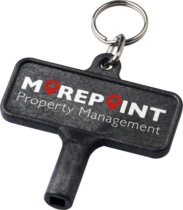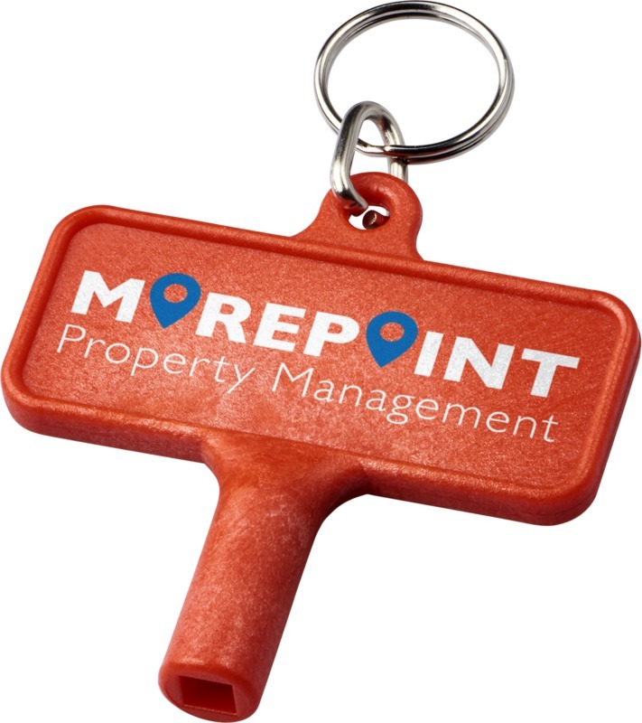 Универсальный ключ с кольцом для брелока, предназначен для объектов, таких как радиаторы, счетчики, уличные фонари. Размеры отверстия — это квадратная форма с краями 5 мм. Пластик PC, Металл.