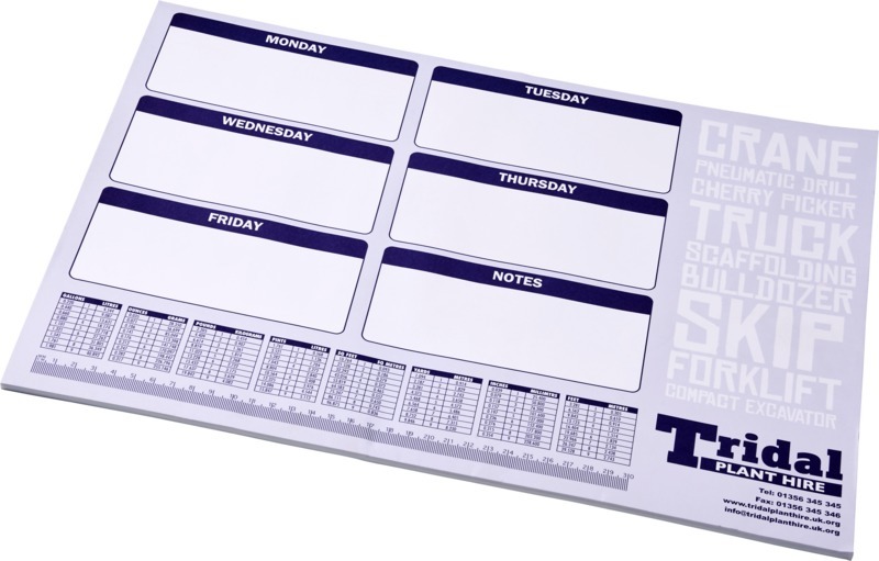 Белый блокнот Desk-Mate® формата А2. Состоит из чистых листов 80 г/м². Стандартный вариант состоит из 50 листов, а также доступно по 25 и 100 листов. На каждый лист можно нанести рисунок. Размеры листа: 594x420 мм. Бумага, 80 g/m2, Картон, 461 g/m2. FSC Mix 100% P7.2 CU-COC-877277.