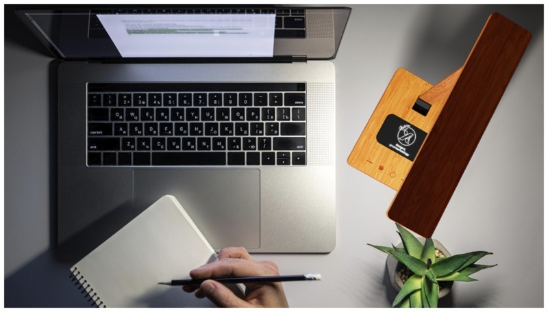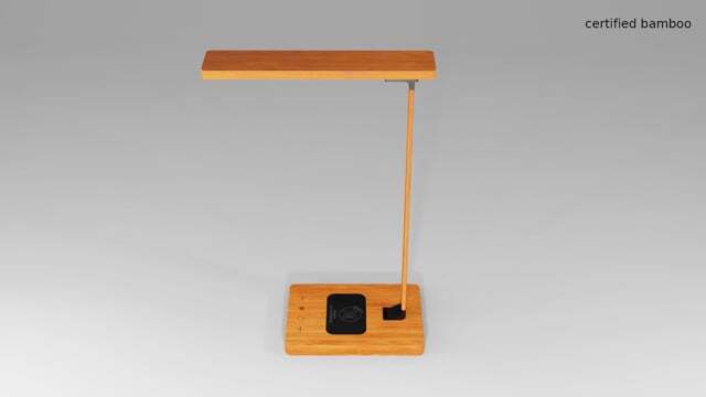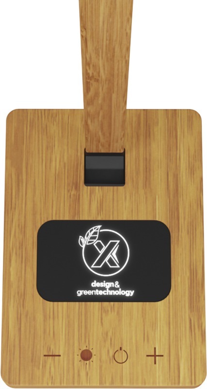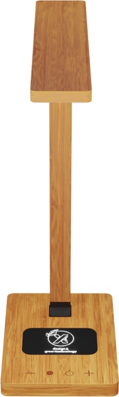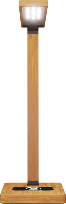 Настольная лампа из березы с подсвечивающимся логотипом и индукционной зарядной базой мощностью 10 Вт (46,5 х 13,4 х 4,5 см). Оттенок, а также яркость света можно регулировать с помощью сенсорных кнопок на основании. Технология индукционной зарядки позволяет заряжать любое совместимое устройство (смартфон, мышь, наушники и т. д.) непосредственно на основании лампы, в месте расположения светящегося логотипа. База также имеет USB-порт для зарядки устройств, которые не поддерживают беспроводную зарядку. Это также позволяет заряжать 2 устройства одновременно. Поставляется с зарядным кабелем, изготовленным из переработанного ПЭТ, в черной подарочной коробке (46,5 x 13,5 x 4,5 см) с магнитной застежкой. Гарантия 3 года. Дерево, Пластик ABS, 50% Переработанный PET пластик, 50% Резина.