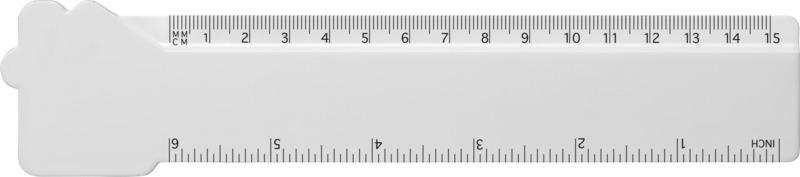 Линейка из твердой переработанной пластмассы в форме дома с разметкой в сантиметрах или дюймах. Переработанный HIPS пластик.