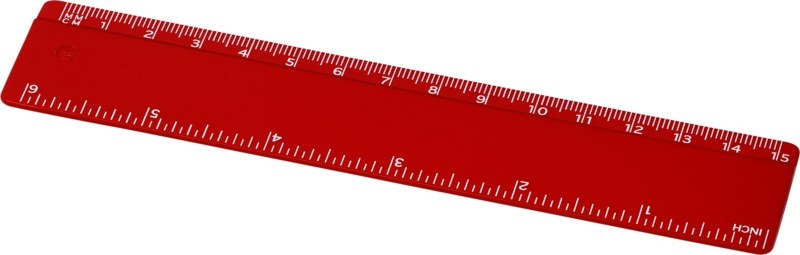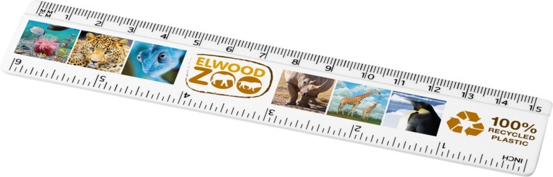 Линейка из переработанного пластика с разметкой, доступной в сантиметрах и дюймах. Переработанный HIPS пластик.