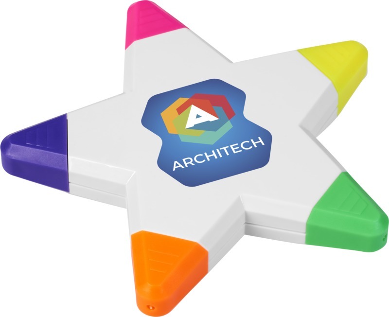Пять ярких маркеров в форме звезды. Пластик PP.