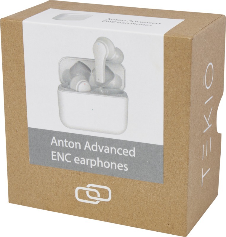 Наушники с подавлением окружающих шумов Anton Advanced оснащены новейшими аудиотехнологиями. После открытия футляра наушники включаются и автоматически синхронизируются друг с другом. Футляр также выполняет функцию портативного зарядного устройства для наушников и может заряжаться с помощью входящего в комплект кабеля Type-C. После того как аккумулятор футляра зарядится до 400 мАч, он сможет зарядить наушники 4 раза от 0 до 100 %. Благодаря 4,5 часам воспроизведения на максимальной громкости на одном заряде они являются обязательными для любого геймера или путешественника. Благодаря встроенному подавлению окружающих шумов наушники блокируют окружающие звуки и захватывают только ваш голос во время звонков или видеоигр, позволяя другим лучше вас слышать. В наушники встроены элементы управления воспроизведением музыки и сдвоенные микрофоны для управления без использования рук. Полная зарядка наушников занимает 1,5 часа, а футляр можно зарядить менее чем за 2 часа. Игровой режим: Низкая задержка 70-75 мс. Поставляется в коробке из крафт-бумаги премиум-класса Tekiō с красочной наклейкой. Пластик ABS.