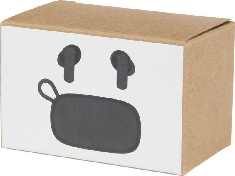 Наушники True Wireless с хорошим качеством звука изготовлены из сертифицированной переработанной пластмассы. Имеют функции автоматического подключения, автоматического включения/выключения, встроенные элементы управления воспроизведением и двойные микрофоны для звонков и управления без использования рук. Футляр с удобным ремешком для переноски также служит портативным зарядным устройством, позволяющим заряжать наушники, к которому прилагается 30-сантиметровый кабель Type-C из TPE-пластика. Зарядка футляра от 0 до 100% занимает 1,5 часа. После 30 минут зарядки аккумулятора футляр емкостью 400 мАч сможет зарядить наушники от 0 до 100% до 4 раз. Благодаря технологии быстрой зарядки всего лишь 10 минут зарядки хватит, чтобы наслаждаться музыкой на протяжении 2 часов. Наушники являются обязательным аксессуаром для любого путешественника благодаря 5 часам времени воспроизведения на максимальной громкости от одного заряда. Оборудованы Bluetooth® 5.3 с радиусом действия 10 метров для обеспечения надежного беспроводного соединения. Поддерживает Siri и Google Assistant. В комплект входит дополнительная пара амбушюр. Поставляется в подарочной коробке и с инструкцией по эксплуатации (изготовленных из экологичных материалов). Переработанный ABS пластик. Упаковка: FSC Recycled 100% P5.1 CU-COC-877277.