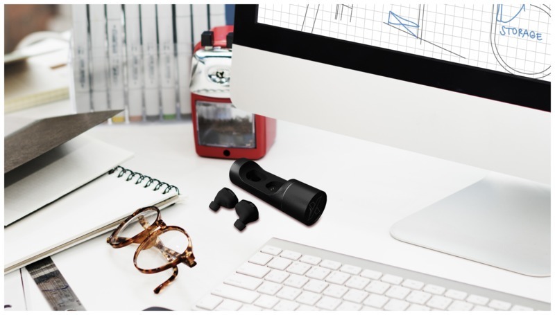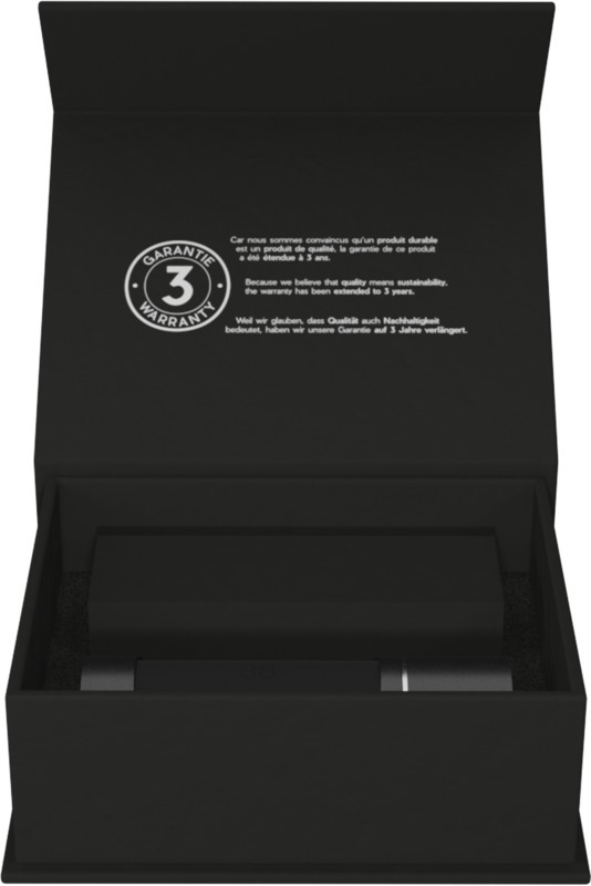 Беспроводные наушники с первоклассным качеством звука. Наушники можно хранить и заряжать в цилиндрическом металлическом футляре, на котором может быть нанесен логотип с подсветкой. С помощью аккумулятора в подставке наушники можно зарядить два раза. Встроенный микрофон. Bluetooth® 5.0. Технология EDR (Enhanced Data Rate). Наушники покрыты резиновым покрытием и антибактериальной обработкой. В комплект входят 3 насадки для наушников разных размеров для оптимального восприятия звука. Патент Ведомства по интеллектуальной собственности Европейского союза. Упаковывается в черную подарочную коробку (10 x 6 x 3,5 см) с магнитной застежкой. Гарантия 3 года. Пластик ABS, Металл.