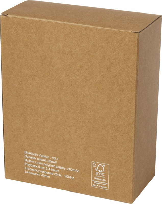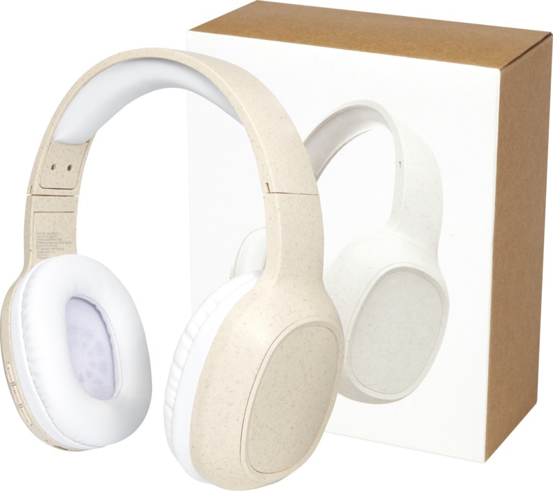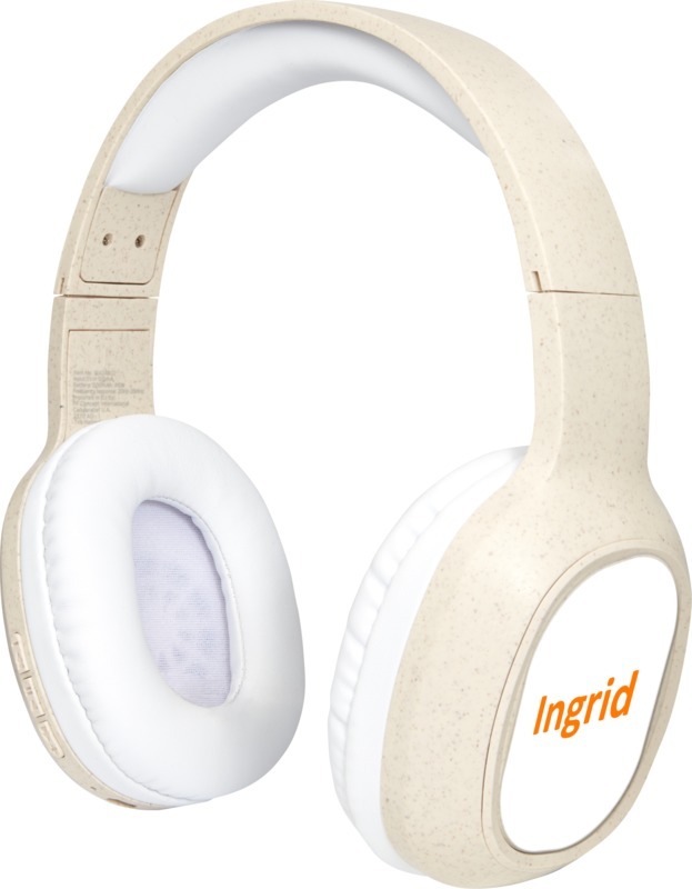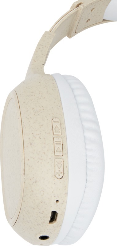 Удобные, легкие и прочные беспроводные наушники с Bluetooth® 5.0 для стабильного соединения, оснащенные встроенным микрофоном для приема телефонных звонков. Эти накладные наушники можно складывать, а их конструкция с креплением на ухе обеспечивает идеальный звук. Встроенная литиевая батарея 200 мАч обеспечивает до 4 часов воспроизведения и полностью заряжается за 2 часа. Рабочее расстояние до 10 метров. Изготовлены из смеси пшеничной соломы и пластика ABS, что сокращает использование первичного пластика. Поставляется в подарочной коробке и с инструкцией по эксплуатации (изготовленных из экологичных материалов). 85% Пластик ABS, 15% Wheat straw. Упаковка: FSC Recycled 100% P5.1 CU-COC-877277.